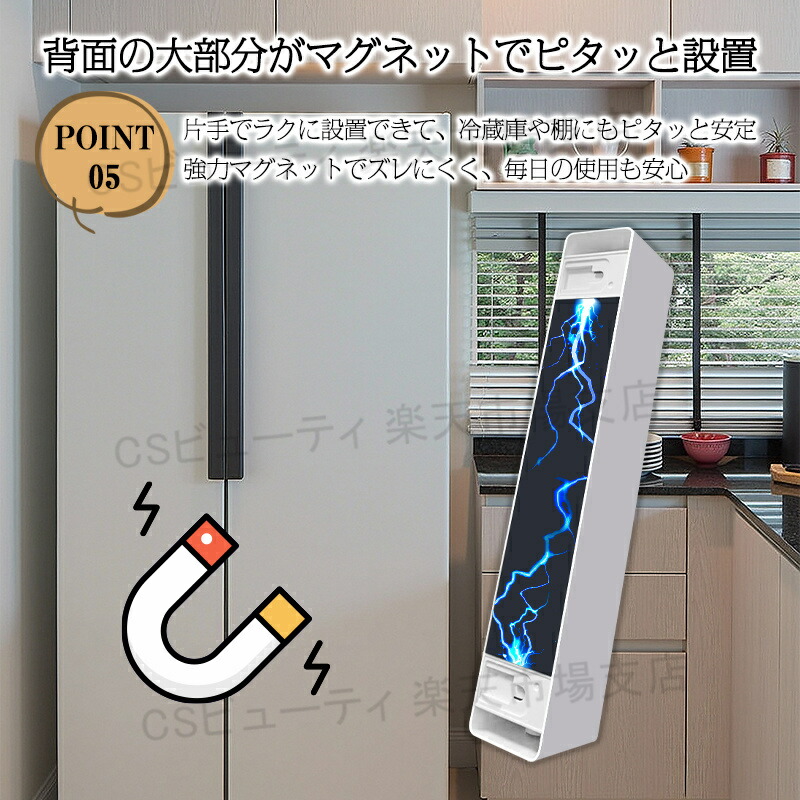 冷蔵庫や金属棚にしっかり固定。ズレにくく、毎日安心して使用可能。