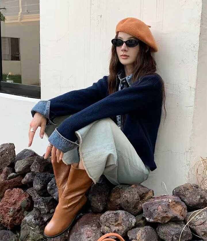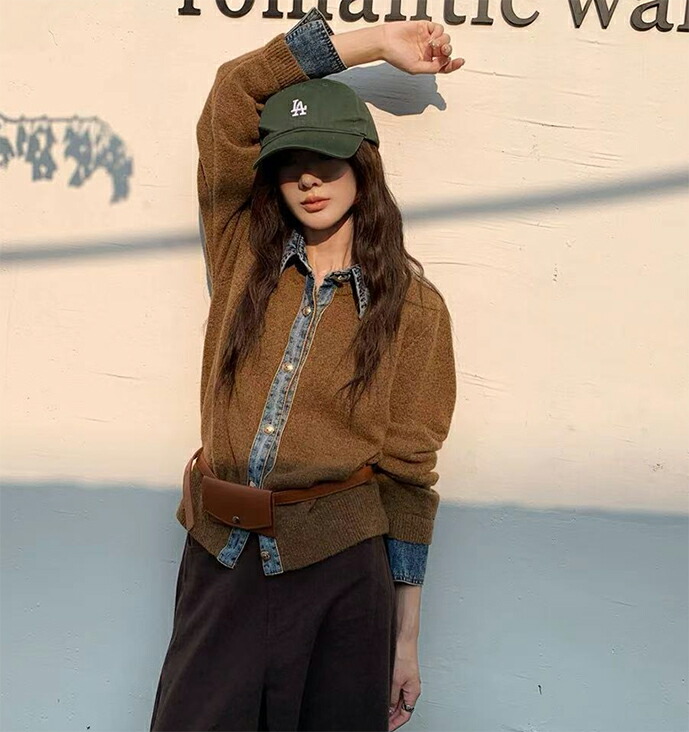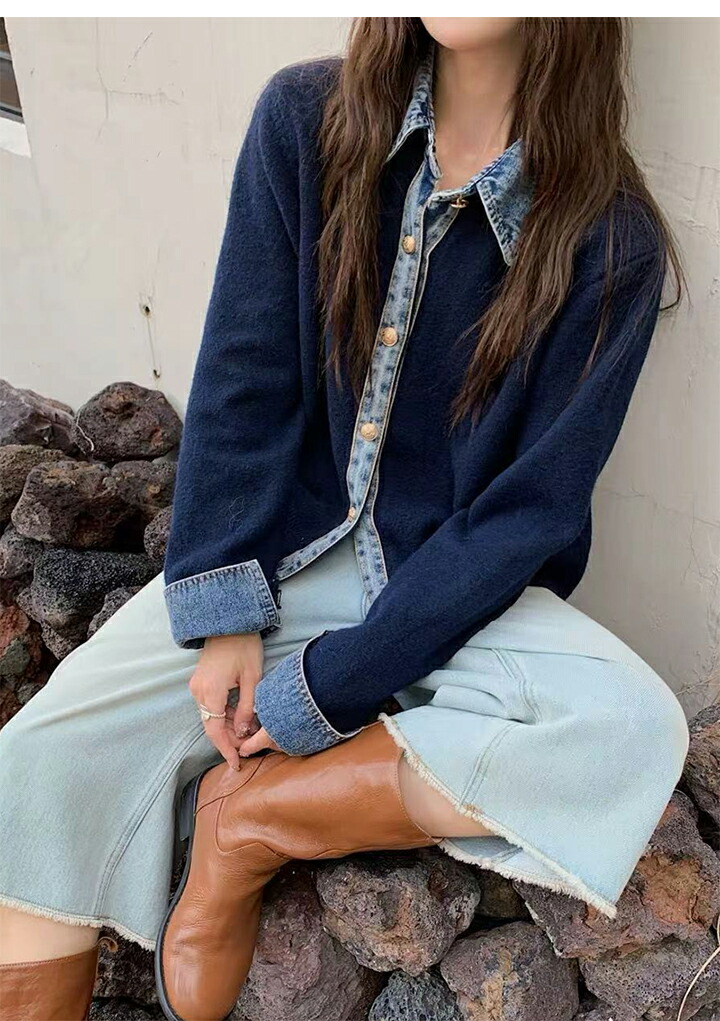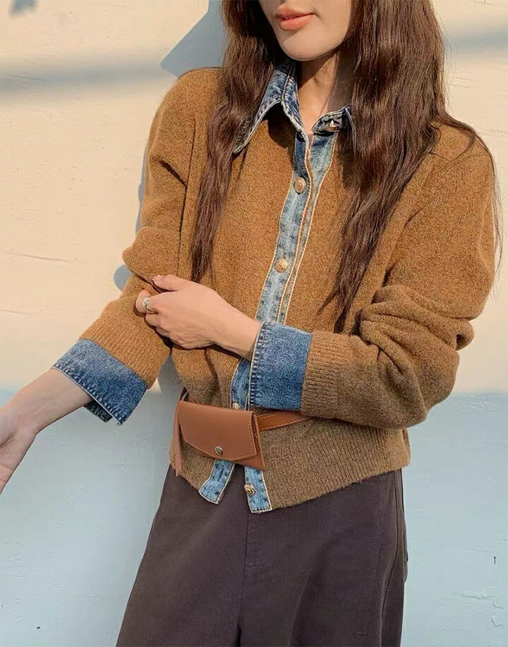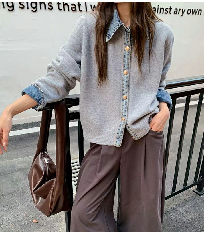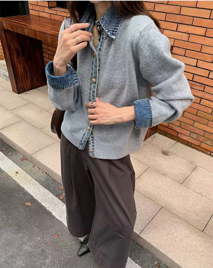 3A44 デニム切り替え ニットカーデ トップス カーディガン ボレロ 早い者勝ち グレー ダークグレー ブラウン ネイビー ライトグレー