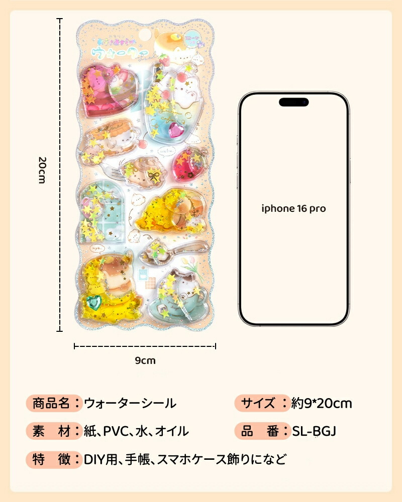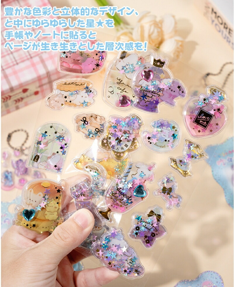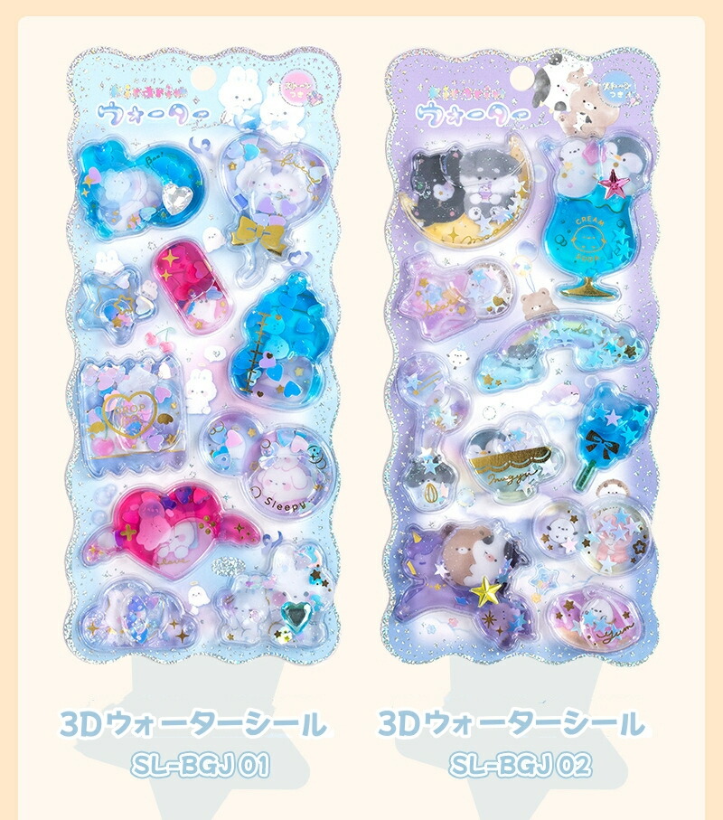 ウォーターシール ぷっくりシール ドロップシール キャラクター 3D 立体シール ぷくぷくシール 3Dシール 平成レトロ ドロップ ぷっくり つやつや キラキラ かわいい 女の子 平成女子 シー 動物