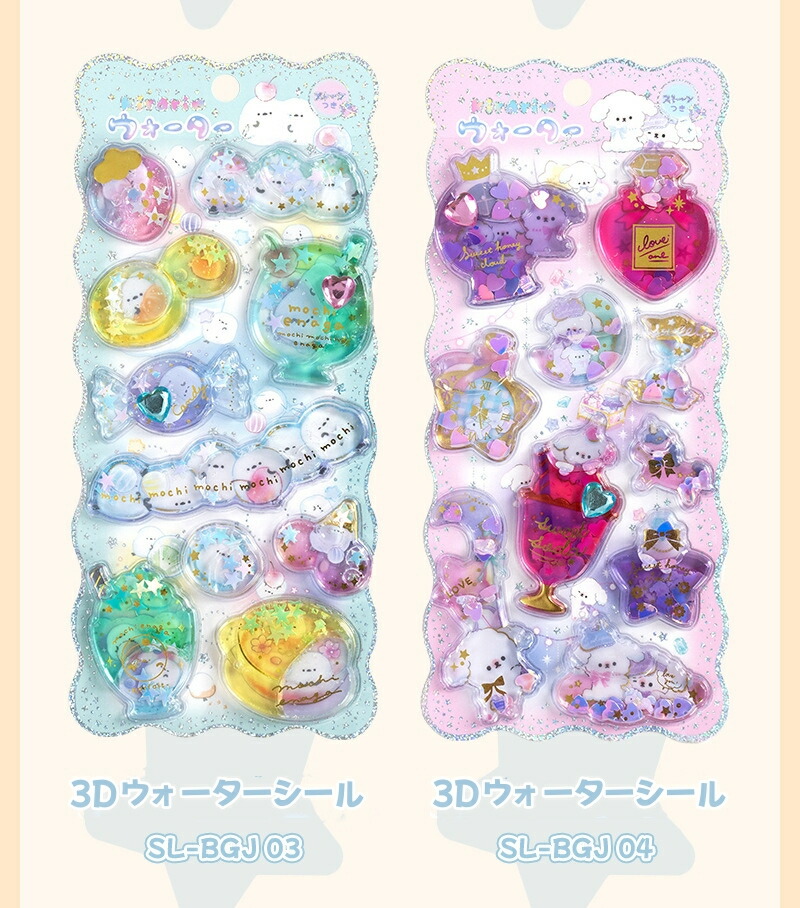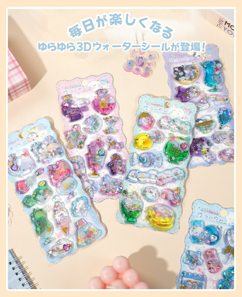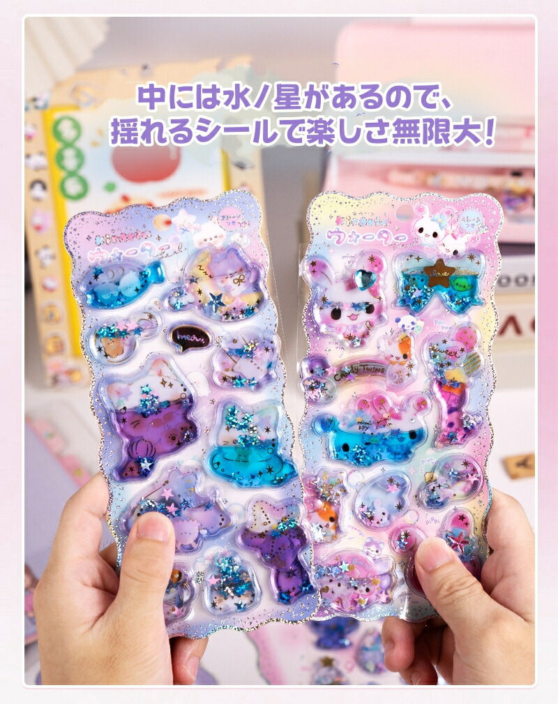 【注水式手帳装飾シール】ウォーターシールならではの立体効果デザインが、手帳やスケッチブックの装飾に最適。季節柄やキャラクター柄が豊富で、毎日の手帳制作に楽しみを加えます。