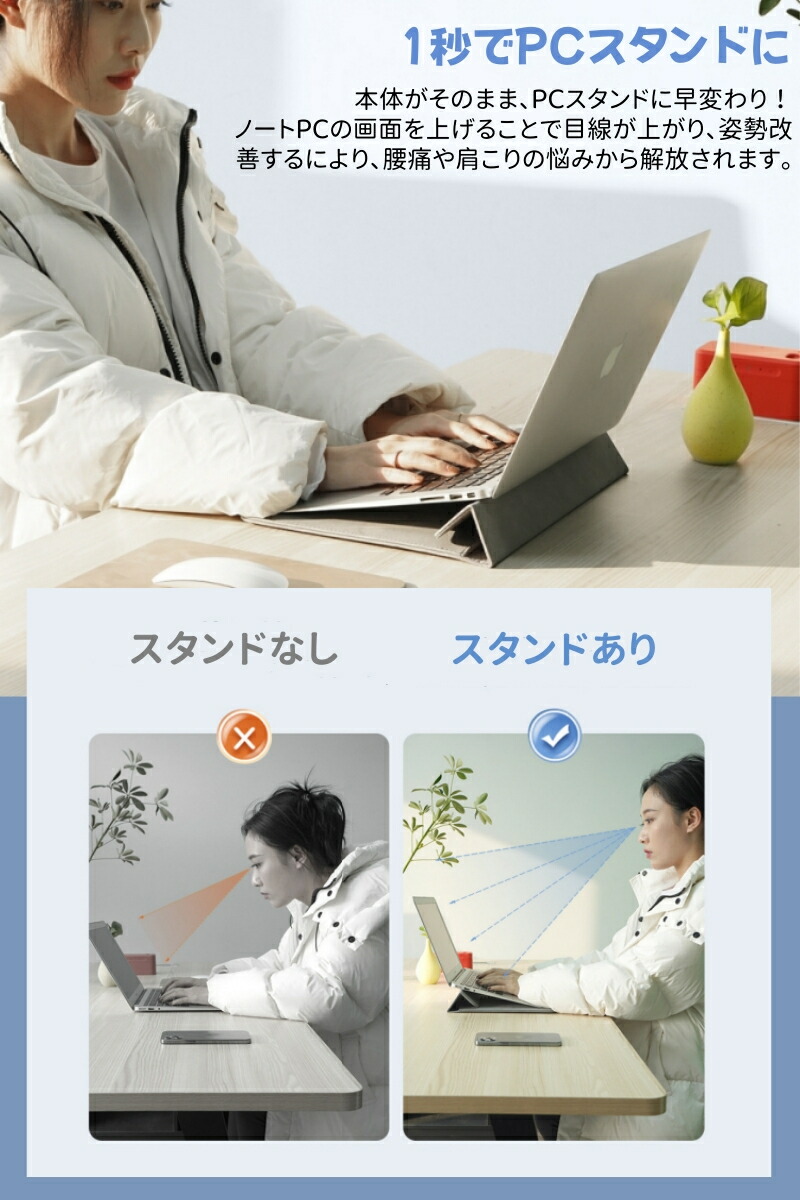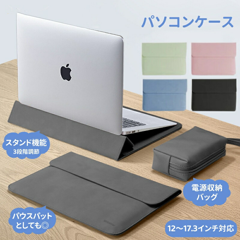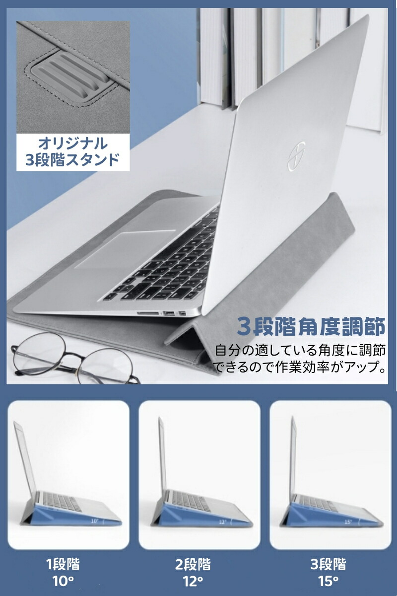 パソコンケース ノートPCケース スタンド機能 ラップトップケース 3段階調節 多機能 撥水 耐衝撃 薄型 パソコンバッグ 多機種対応 マウスパッド PUレザー軽量 PCバッグ タブ 電源収納ポーチ付
