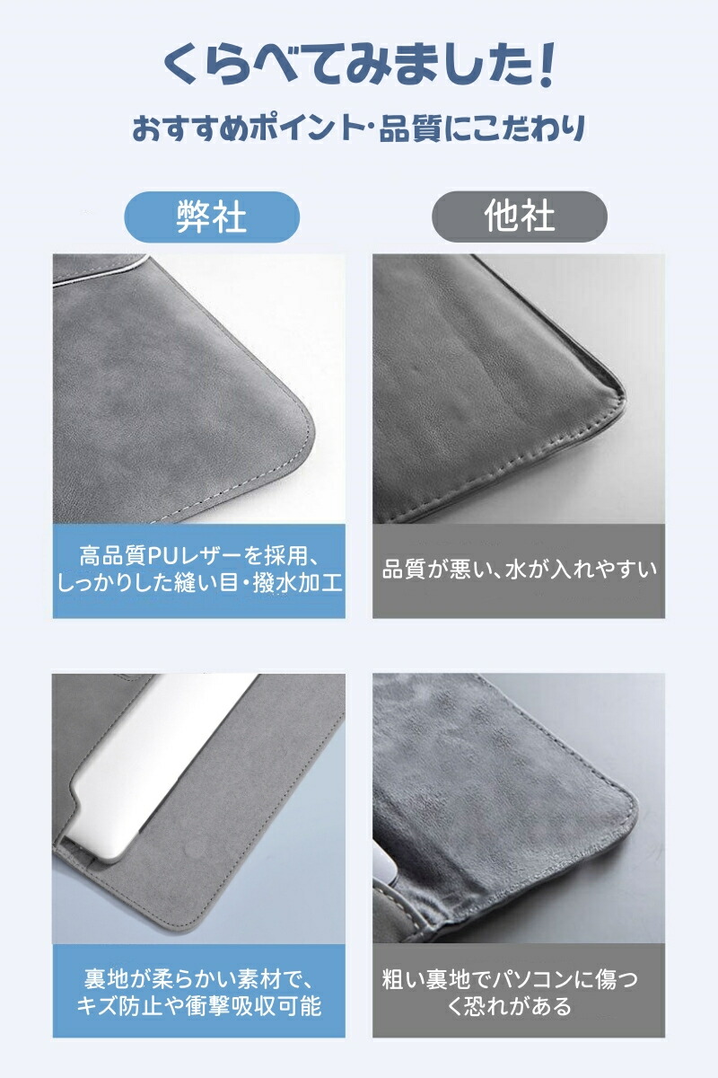 ◆内側は柔らかい素材ながら適度な硬さがあり、傷防止や衝撃吸収に優れ、本体を優しく包み込みます。大切なノートパソコンをしっかり保護します。