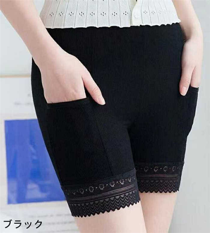 ペチパンツ ガードル パンツ レディース 透け防止 レースパンツ 春 夏 ベーシック 下着 ストレッチ スリム ポケット付き インナー ペチコート ズボン下 汗対策 重ね履き用 女性下着 婦人 ボトム 黒 ボトム レディース 下着 オシャレ レイヤード ワンピース下 ショート