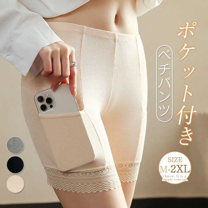 ペチパンツ ガードル パンツ レディース 透け防止 レースパンツ 春 夏 ベーシック 下着 ストレッチ スリム ポケット付き インナー ペチコート ズボン下 汗対策 女性下着 婦人 ボトム 重ね履き用