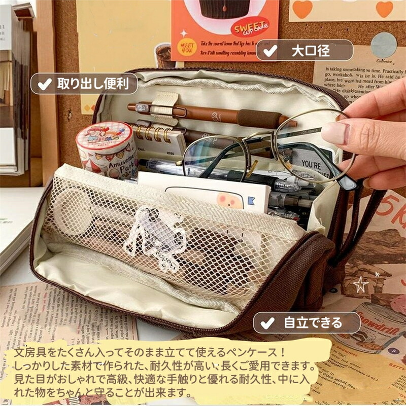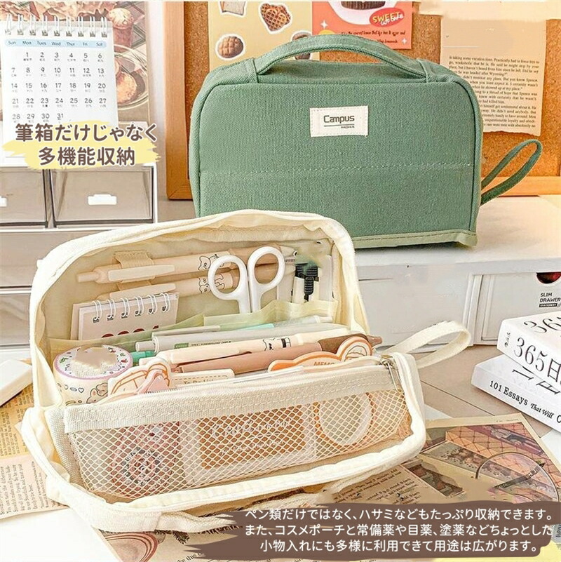 筆箱 ペンケース 大容量 ペンホルダー 文房具 事務用品 筆記具 ペンケース 通販 グリーン ライトブラウン コーヒー