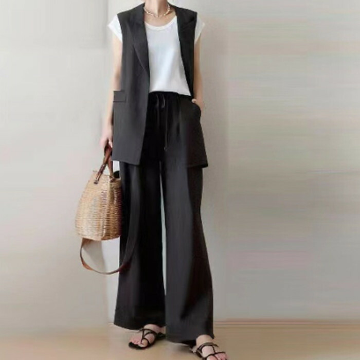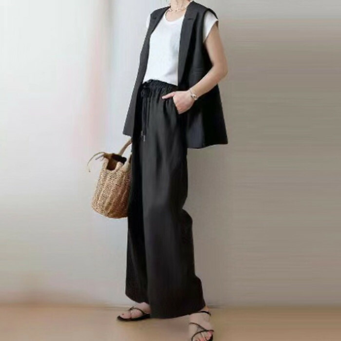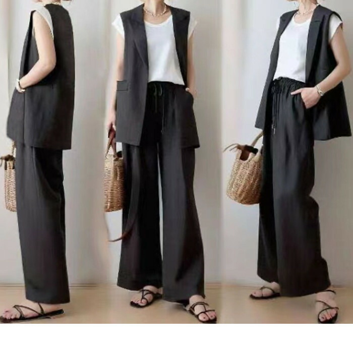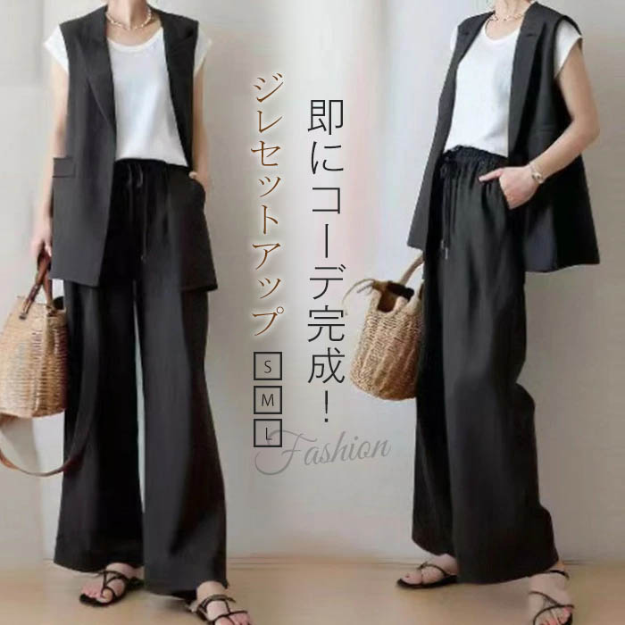 セットアップ ジレ ベスト レディース ベストスーツ パンツスーツ 2点セット ジレ セットアップ コットン 上下セットアップ カジュアル ワイドパンツ 春 夏 レイヤード風 重ね着 着痩せ シンプル カジュアル オフィス フォーマル 通勤 OL 日常 ブラック 黒 黒 上品 着瘦せ 入学式 卒業式 仕事服 実習 グレー ブラック 紺 卒園式 お食事会 成人式 謝恩会 同窓会 演奏会 発表会 女子会 参観日 七五三 お宮参り 20代 30代 40代