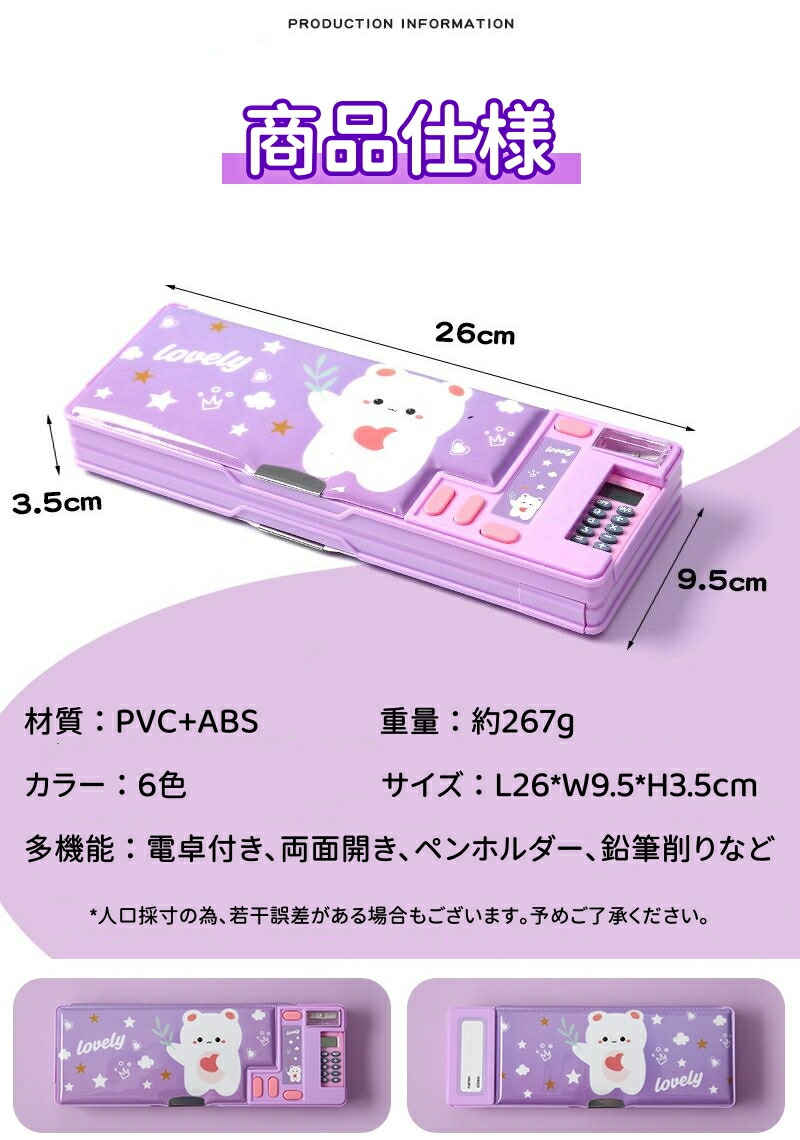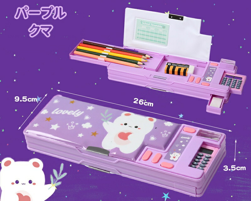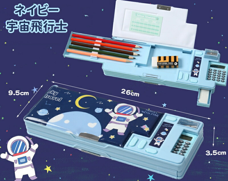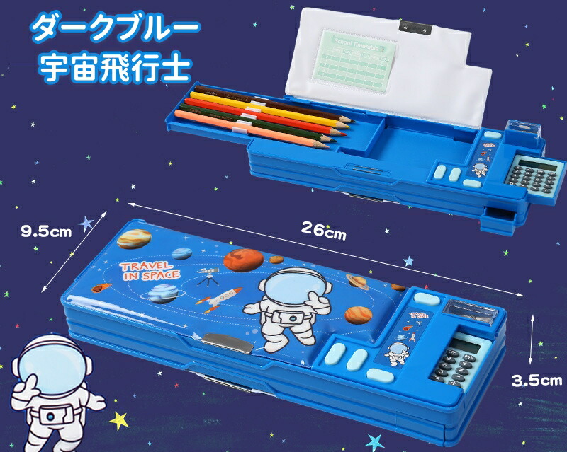 筆箱 小学生 大容量 ペンケース 電卓 文房具 事務用品 筆記具 ペンケース 特集 ネイビー・宇宙飛行士 ダークブルー・宇宙飛行士 ブラック・宇宙飛行士 ピンク・ユニコーン ピンク・女の子 パープル・クマ