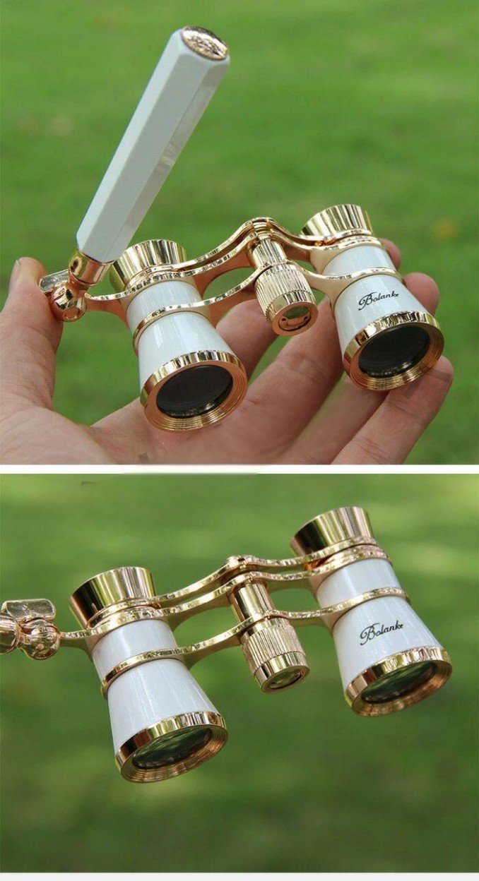 オペラグラス クラッシック レトロ ヨ シャンパンゴールド レッド ブラック