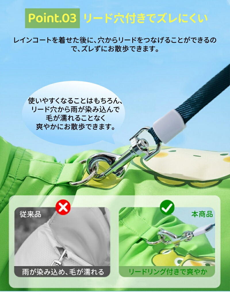 雨が入り込まないように、リードリングが設置し、愛犬に濡れる心配もありません。
