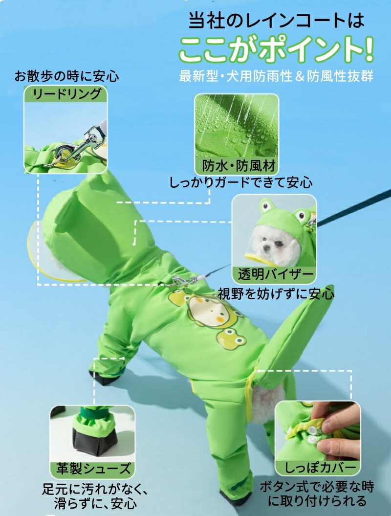 犬 レインコート ドッグウェア ペット グッズ 4本足 中型犬 小型犬 犬用 カッパ 洋服 着せやすい 着脱簡単 フード帽子付き 散歩 背中開き 犬用品 服 アウトドア 犬用レインコート レ おしゃれ