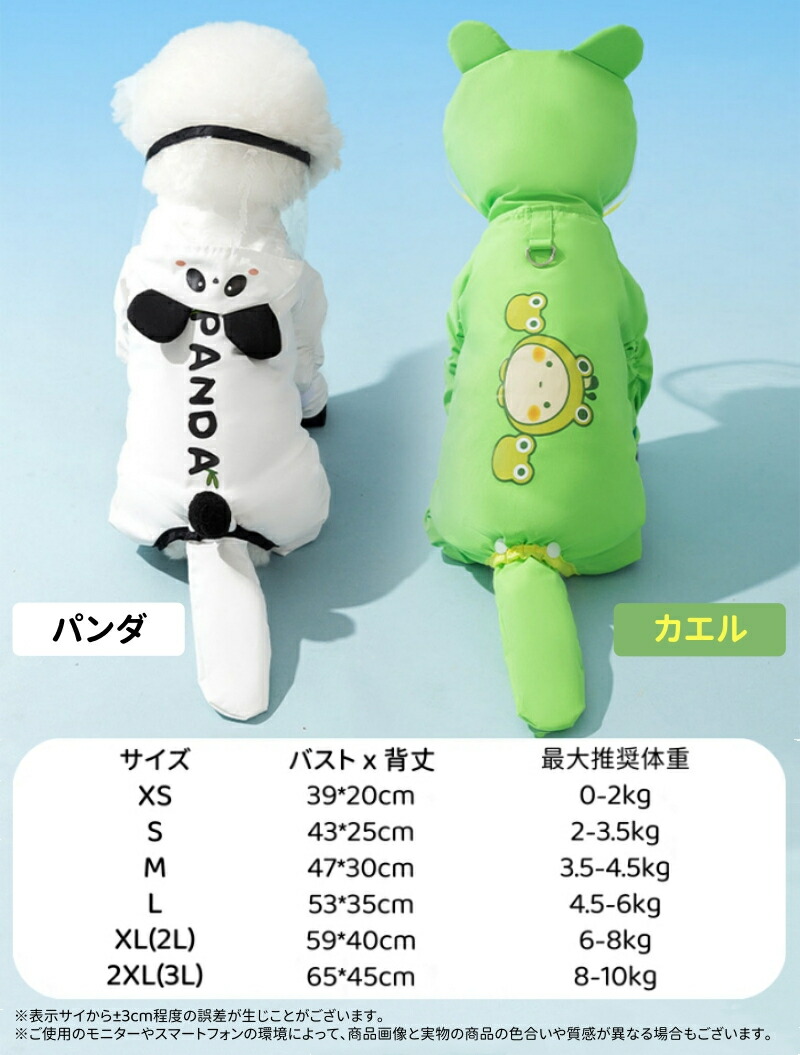 犬 レインコート ドッグウェア ペット ペット ペットグッズ 早い者勝ち パンダ カエル XS S M L 2L 3L