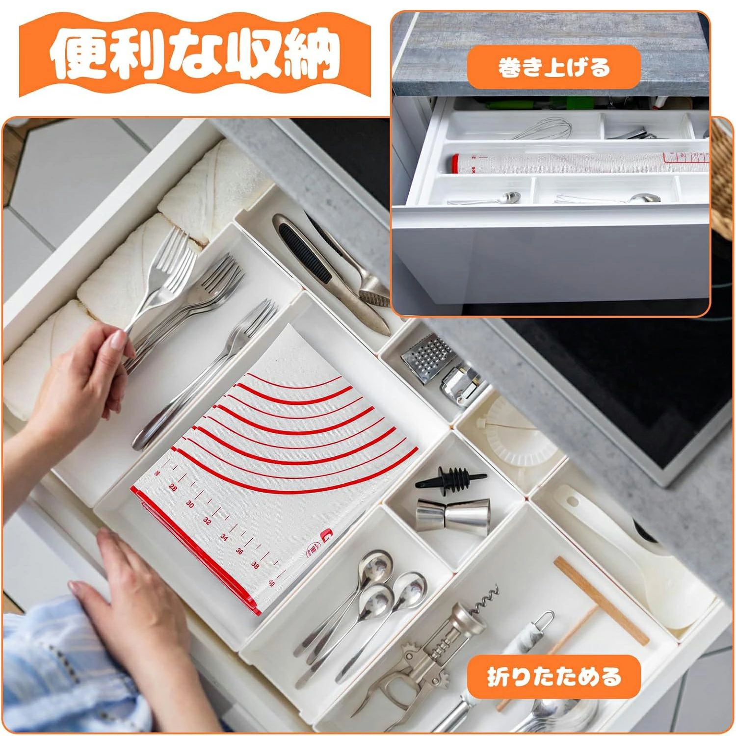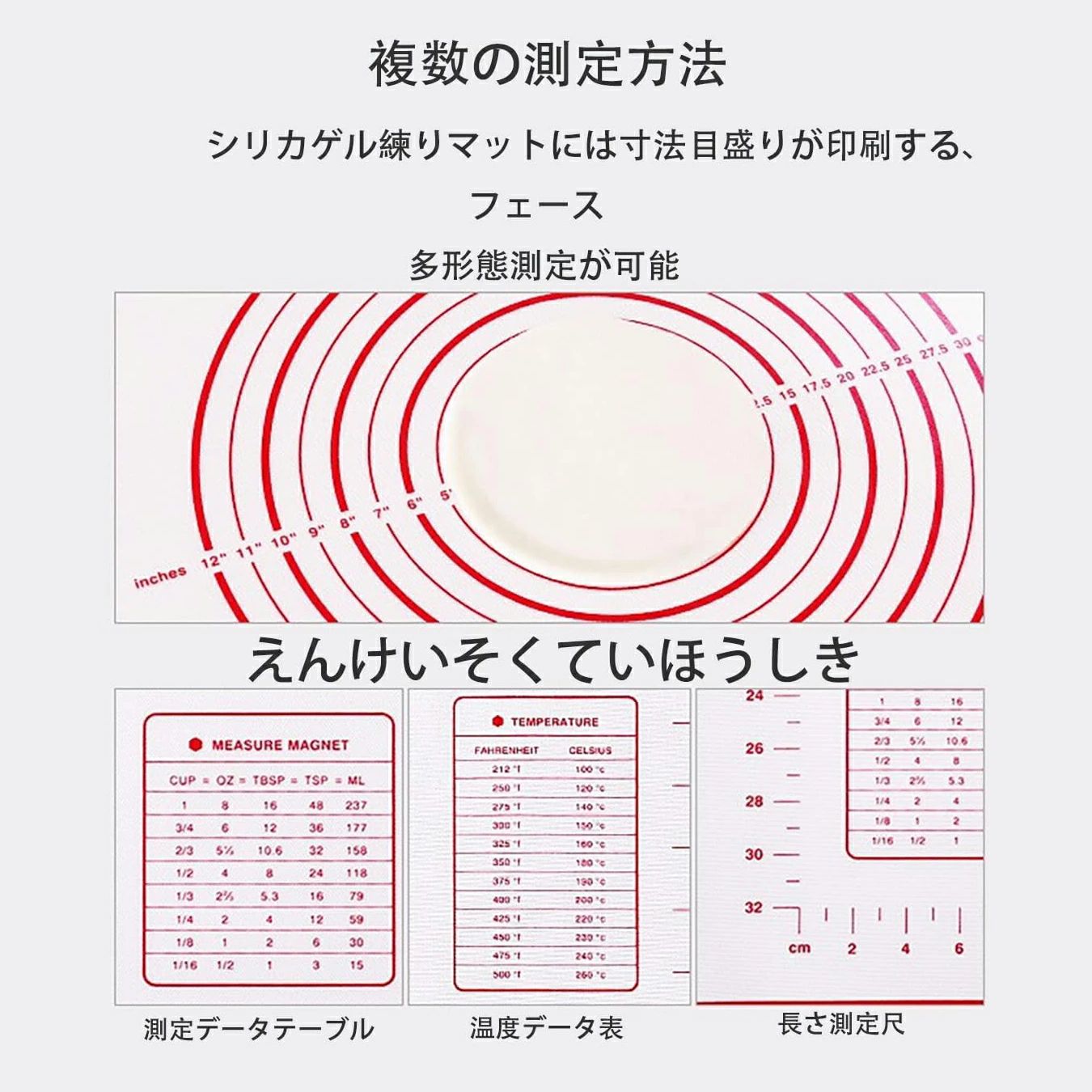 クッキングマット 麺棒 2点セット シリコンマット 目盛り付き 6サイズ 耐熱 滑り止め 繰り返し使用可能 ベーキングマット めん棒 生地ローラー 製菓道具 収納便利 餃子 ピザ28 調理台保護マット