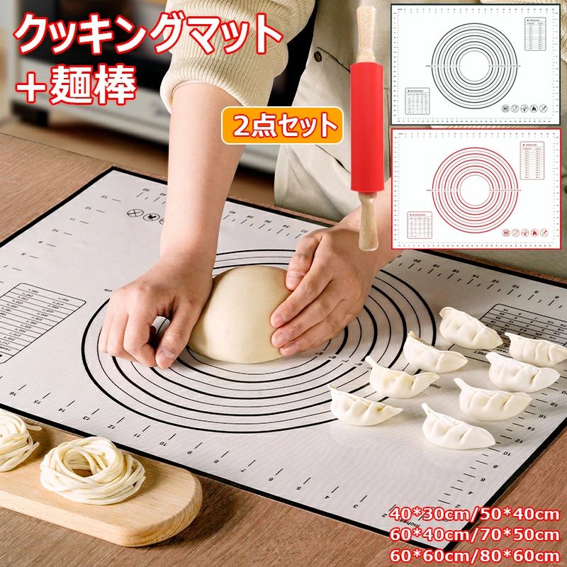 クッキングマット 麺棒 2点セット シ 調理 製菓道具 製菓 製パン器具 パンマット 通販 ブラック レッド ブラック+麺棒 レッド+麺棒 40*30cm 50*40cm 60*40cm 70*50cm 60*60cm 80*60cm