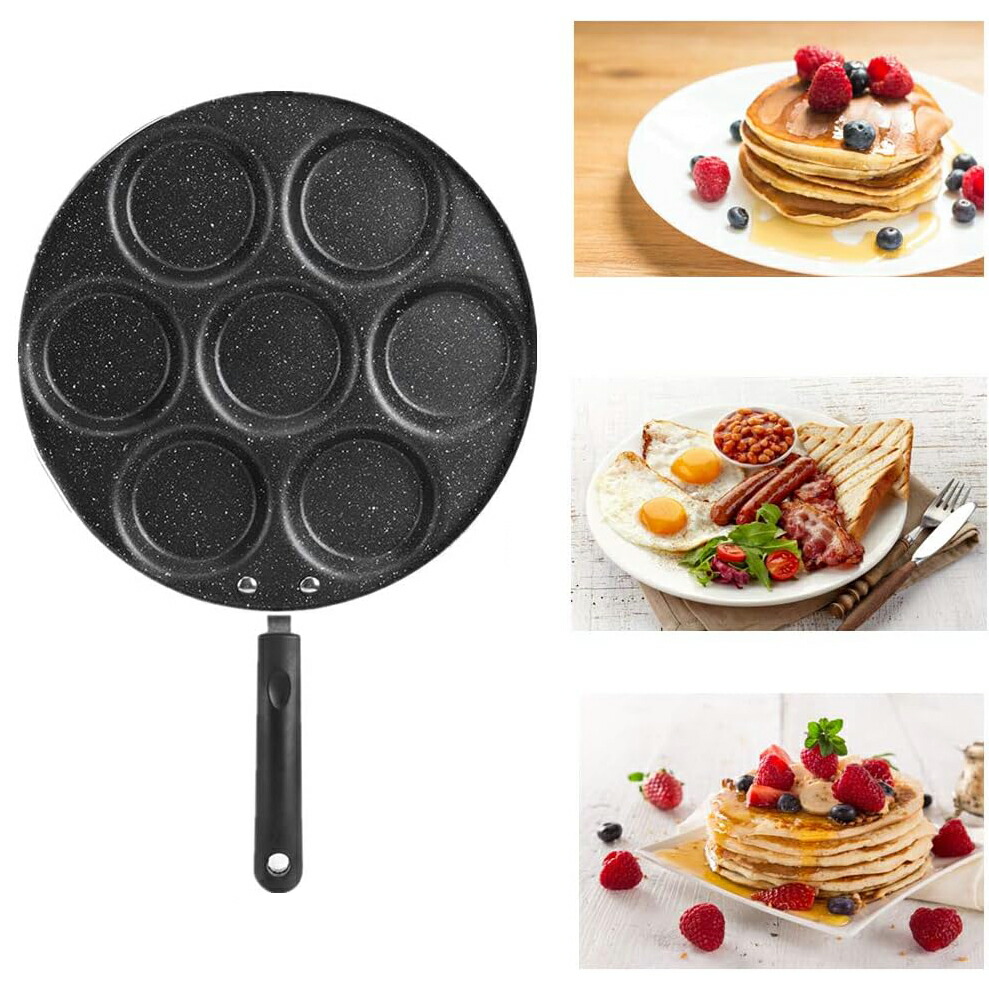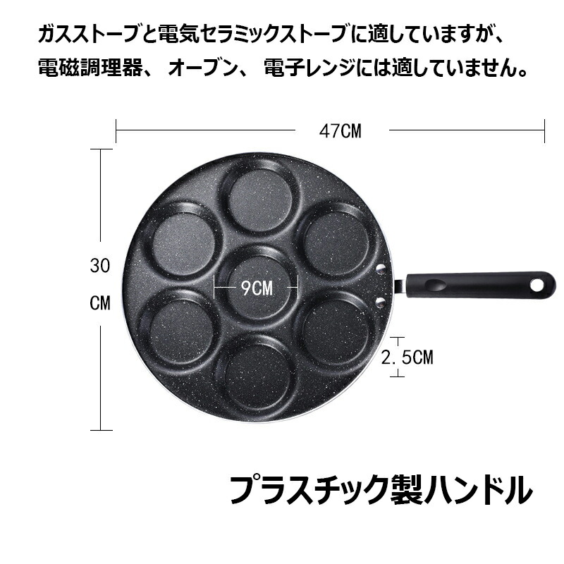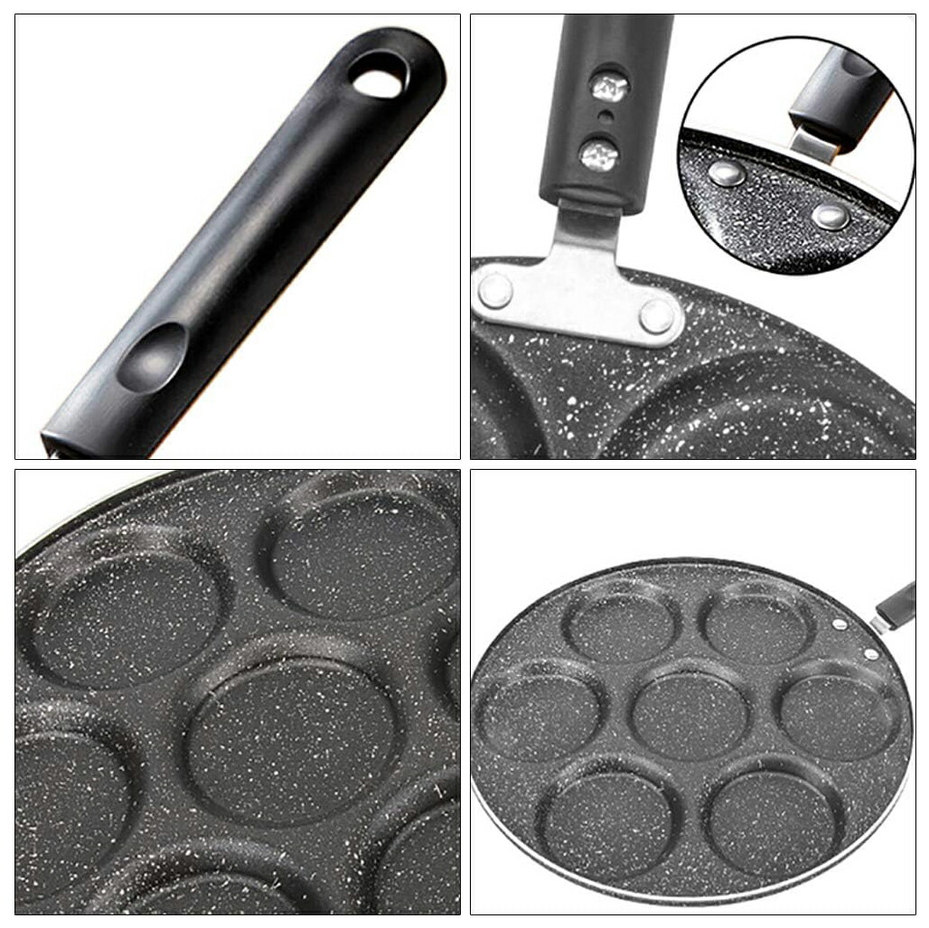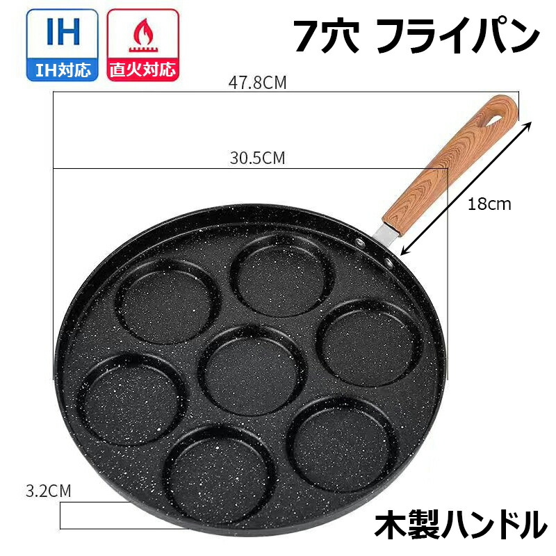 7穴フライパン 目玉焼き用 マルチ多用 プラスチック製ハンドル 木製ハンドル