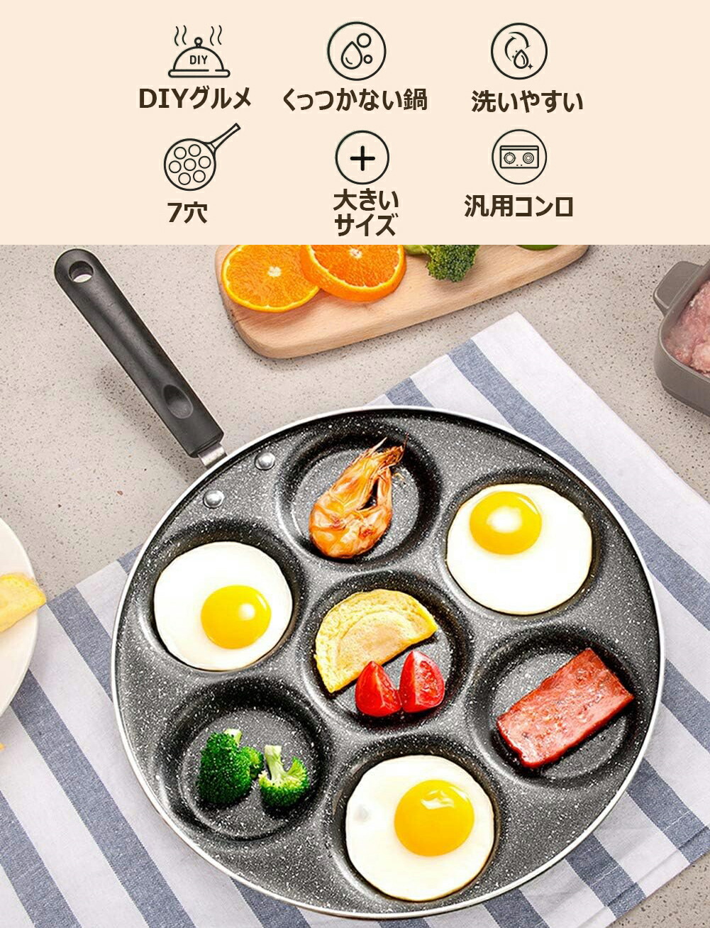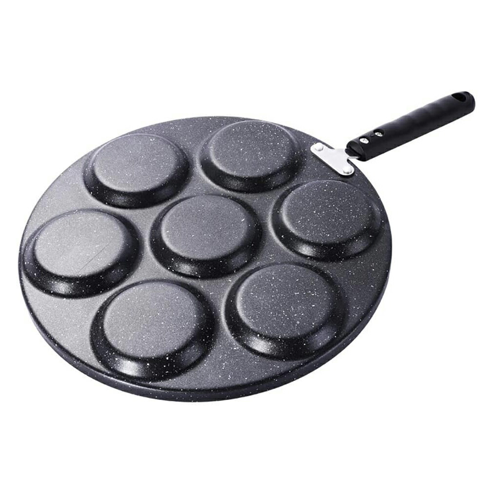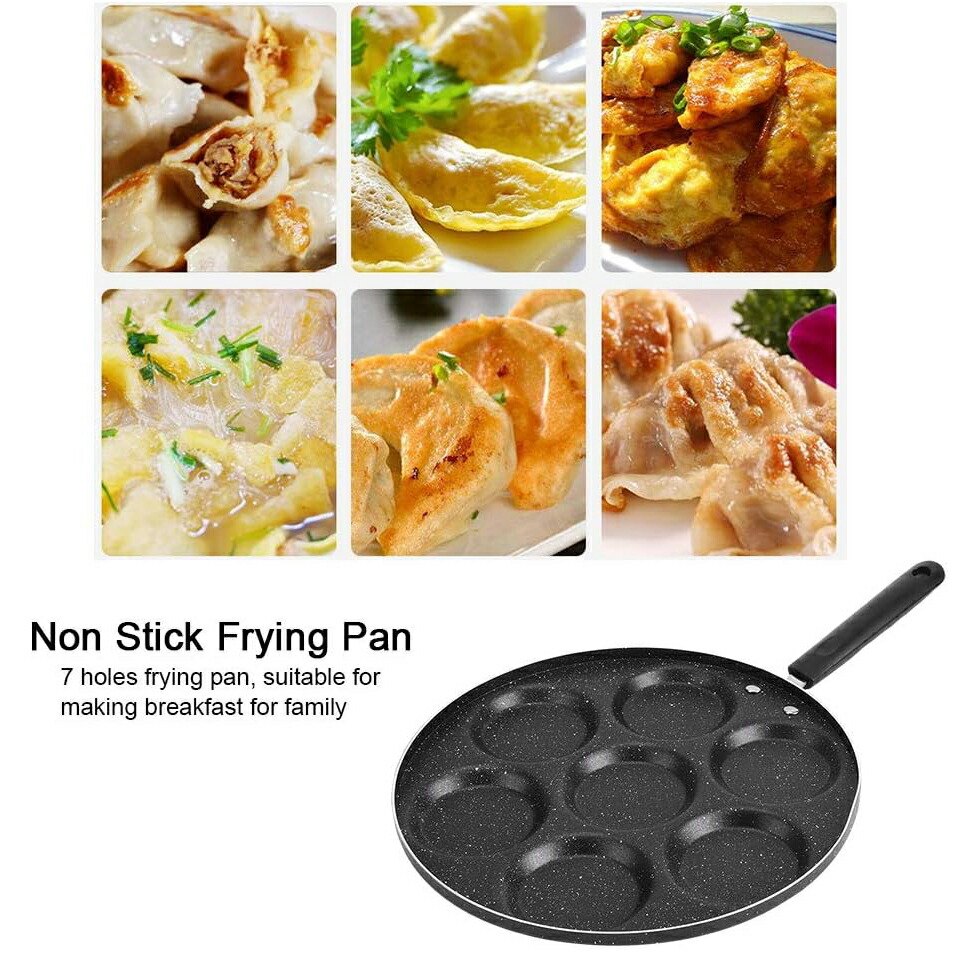7穴フライパン 目玉焼き用 マルチ多用 プラスチック製ハンドル 木製ハンドル