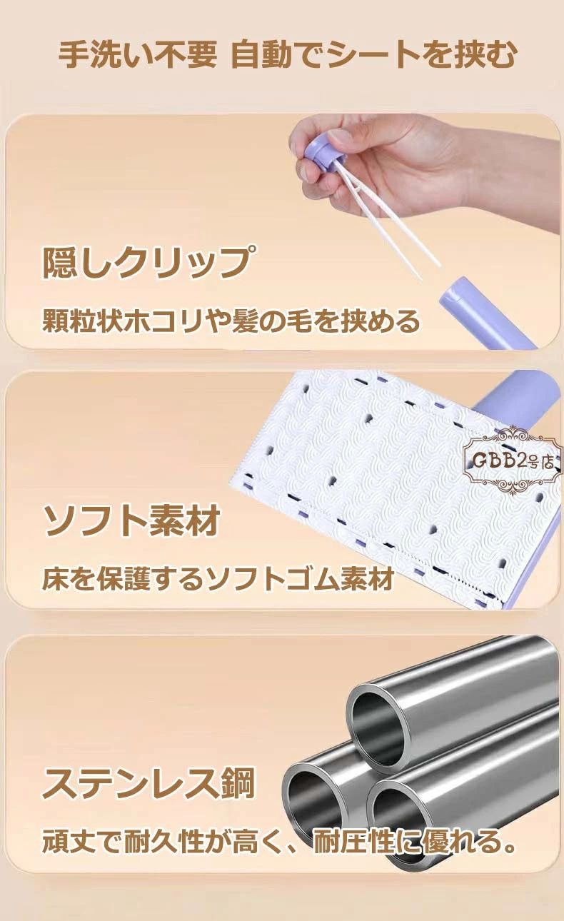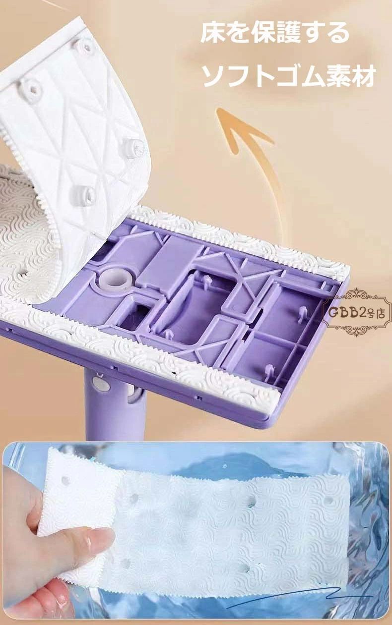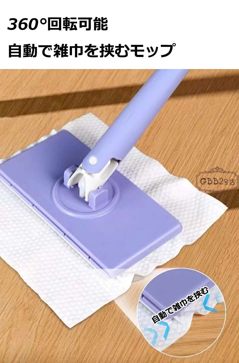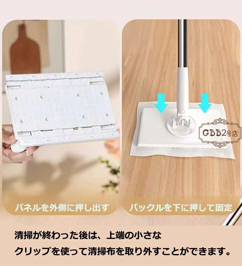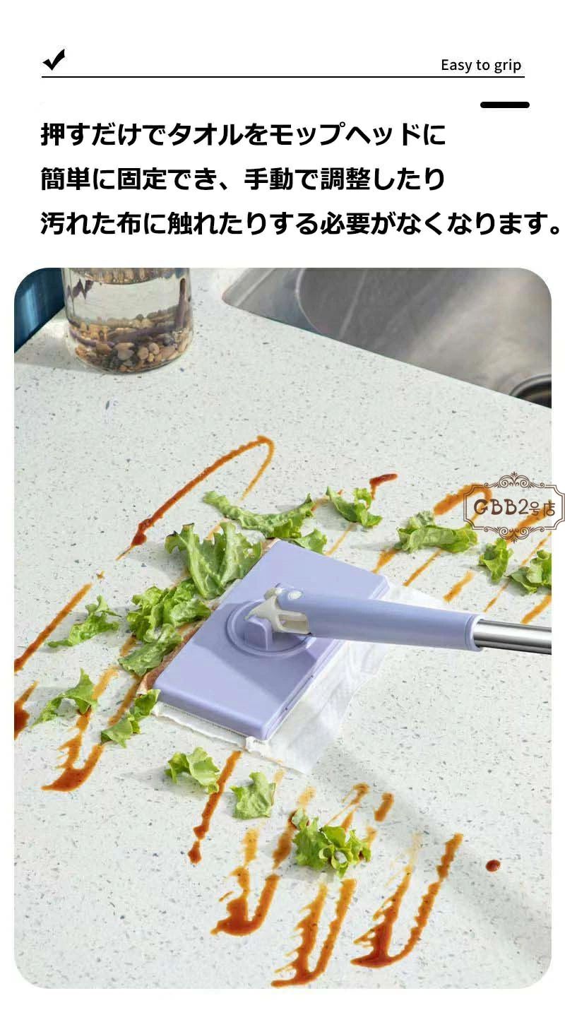 掃除布4枚付き 自動で雑巾を挟むモップ、ペーパータオル掛けフローリングモップ 洗面タオルを自動で挟むモップ 乾湿両用モップ 全自動タオルモップ 自動で雑巾を挟むモップ 汚れないハンドモップ