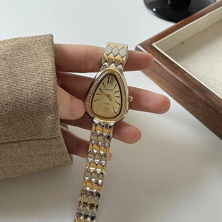 細身のベルトが手首を華奢に見せ、シンプルなデザインながら高級感と上品さを演出します。