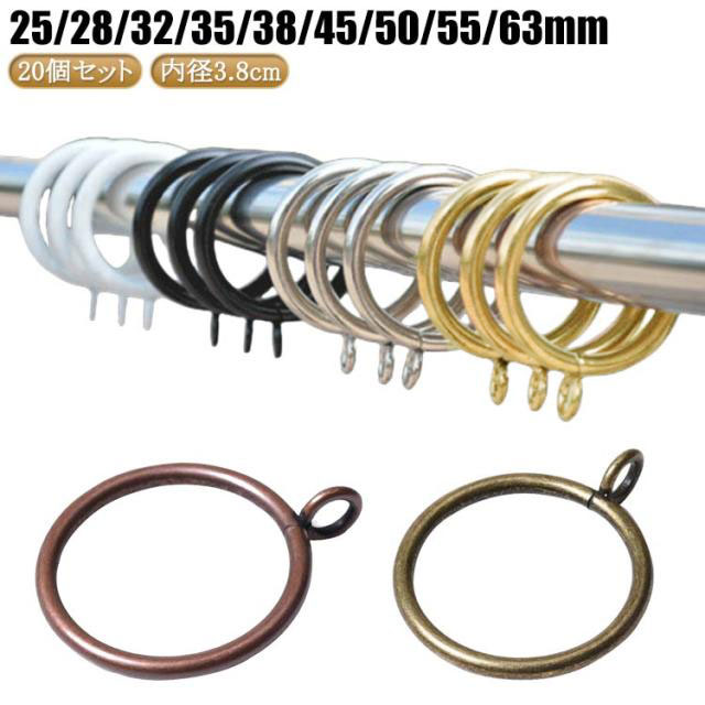 63mm 間仕切り 内径3.8cm 20個入 フック カーテンレール 32mm 突っ張り棒用 38ミリ 突っ張り 目隠し 賃貸 25 28 32 35 38 45 55 つっぱり棒 突 50