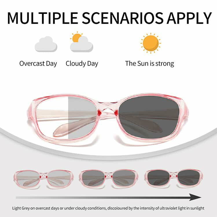 光に反応して色が変化します曇りの時はライトに遮光、晴れの日は紫外線の強度に応じて色が濃くなります。ランニングや散歩、マリンスポーツ、ドライブに最適です。眩しさをカットして、疲労を防ぎアクティビティに集中できます。ドライブでは危険な眩しさをカットして安全な運転をサポートいたします。クールなデザインで、男女兼用でご使用できます。