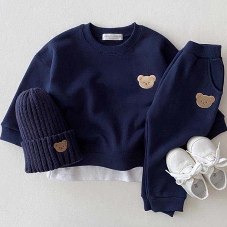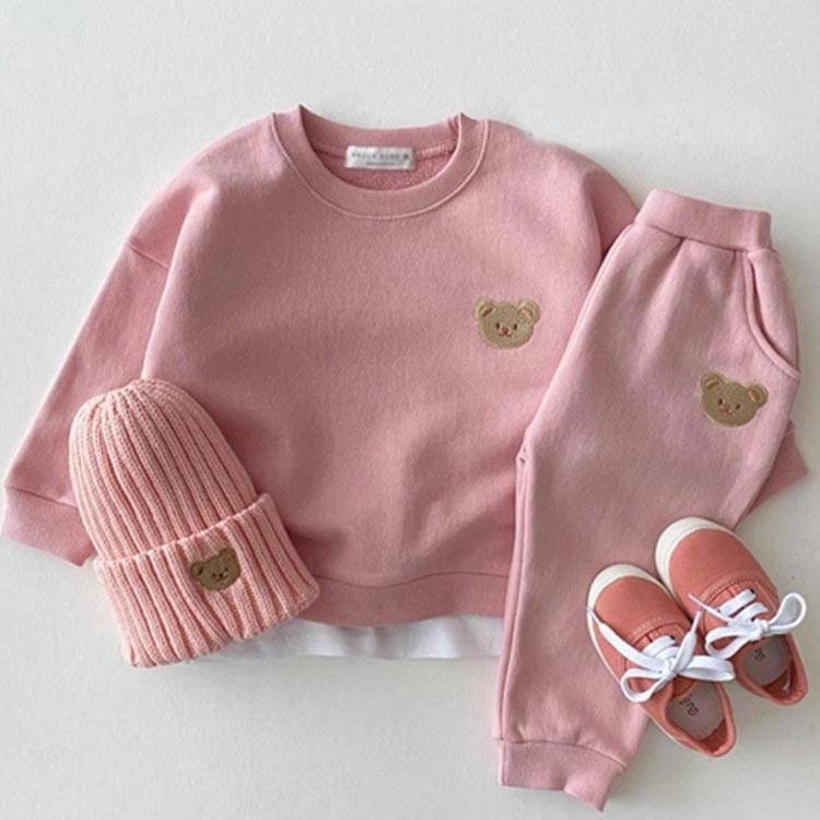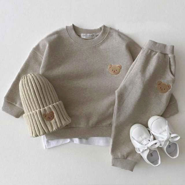 キッズ セットアップ ベビー服 上下セット 長袖 パーカー スウェットパンツ 2点セット 男の子 女の子 可愛いくま 子供服 秋 冬 春 ジュニア 洋服 オシャレ お揃い 防寒 保温 暖か カジュアル