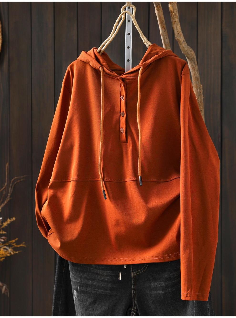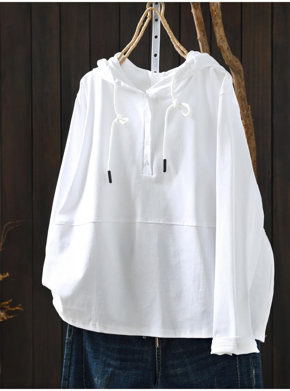 パーカー tシャツ フード付き レディース 長袖 春 秋 冬 Tシャツ トップス ハーフボタン シンプル カジュアル 着回し 大人 無地 綿 コットン プルオーバー 体型カバー