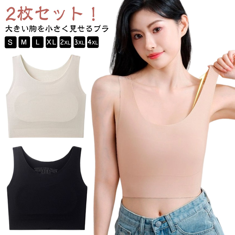 2枚セット!通気性優れる、締め付けることなく美しく健康的にバストをフラットにするブラジャー。