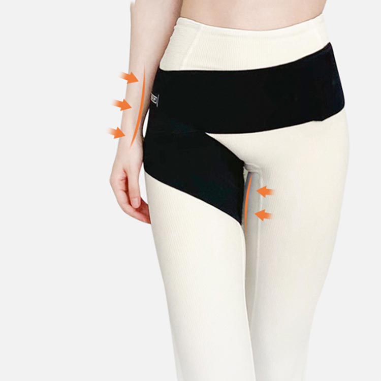 【股関節を支えるサポーター】関節を固定し筋肉をサポートすることで、股関節の痛みを和らげ動作をスムーズにする役割を担っています。腰から太ももにかけて全体を圧迫することで、筋肉の無駄な動きを抑制し、股関節への負担を軽減します。