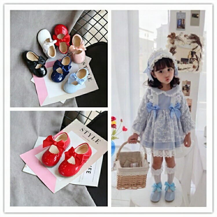 ベビー用 卒園式 入園式 通園 シューズ シューズケース 子供 靴 女の子 キッズ リボン付き パーティー 発表会 ネイビー ホワイト ピンク ブルー レッド 11cm 12cm 13cm ブラック