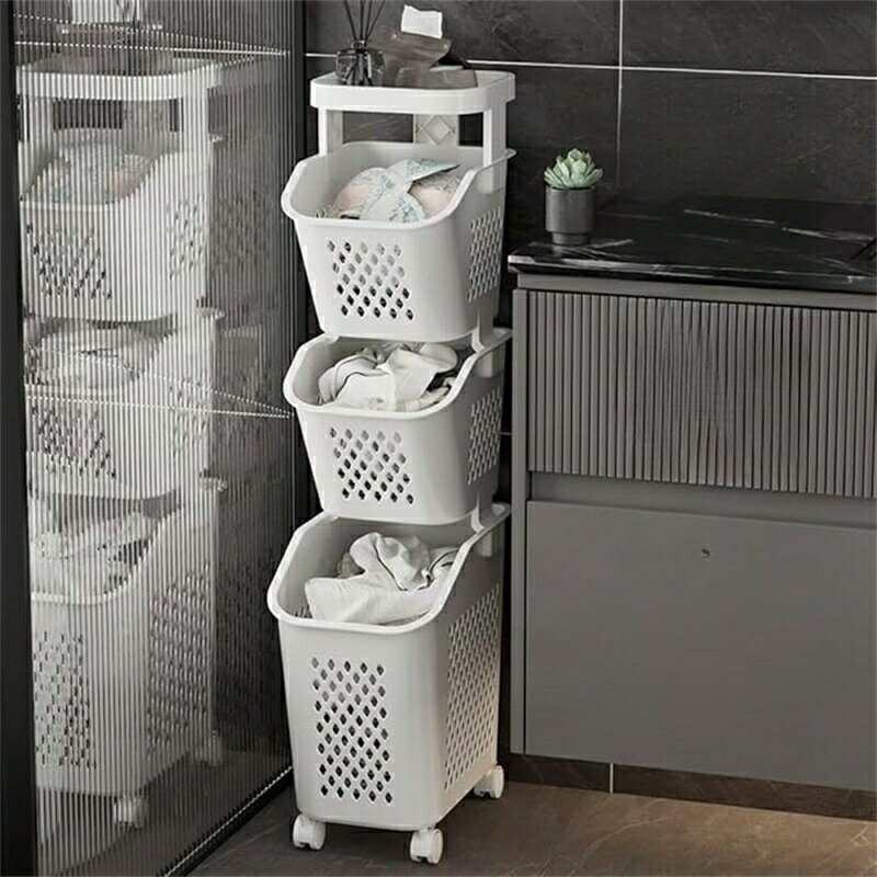 ランドリーバスケット キャスター付き 洗濯かご ラック 洗濯 洗濯カゴ キャスター付 キャスター スリムカート スタッキングバスケット ランドリーワゴン 1 2 3 4段 組立式 浴室 収納 大容量
