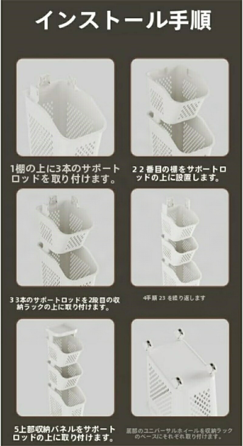 取り外せ可能な独立型バスケットがあり、傾斜式のデザインで、物を取りやすく、かごを外しやすい。洗 物を干しに行く時や取り込む時も便利に使います。