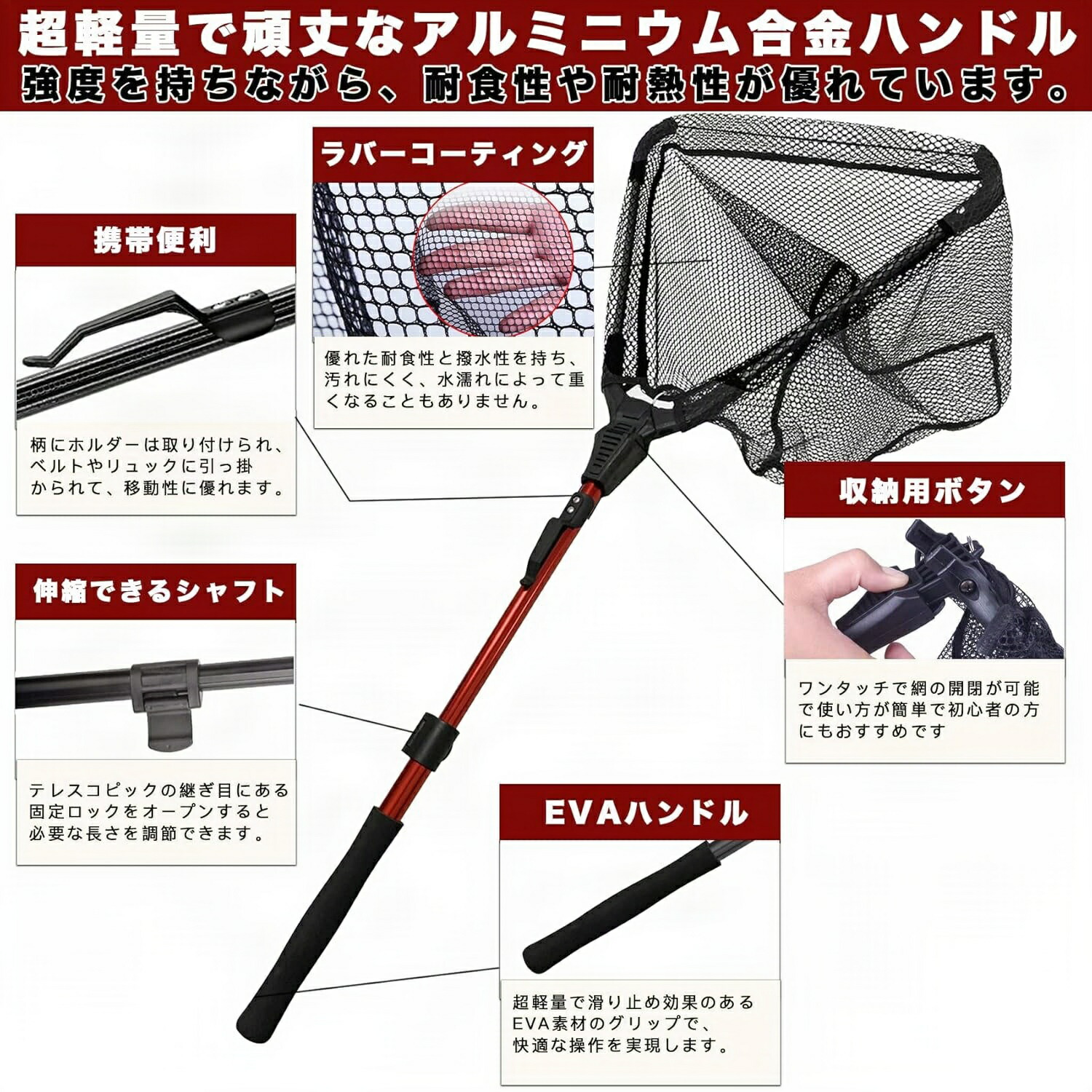 玉網 たも網 ランディングネット 折りたたみ式 伸縮式 折りたたみ 玉網セット 玉網の柄 タモ網 釣りネット すくい網 軽量 防錆素材 多機能ツール ラバーコーティングネット 魚取り網 ラバーネット