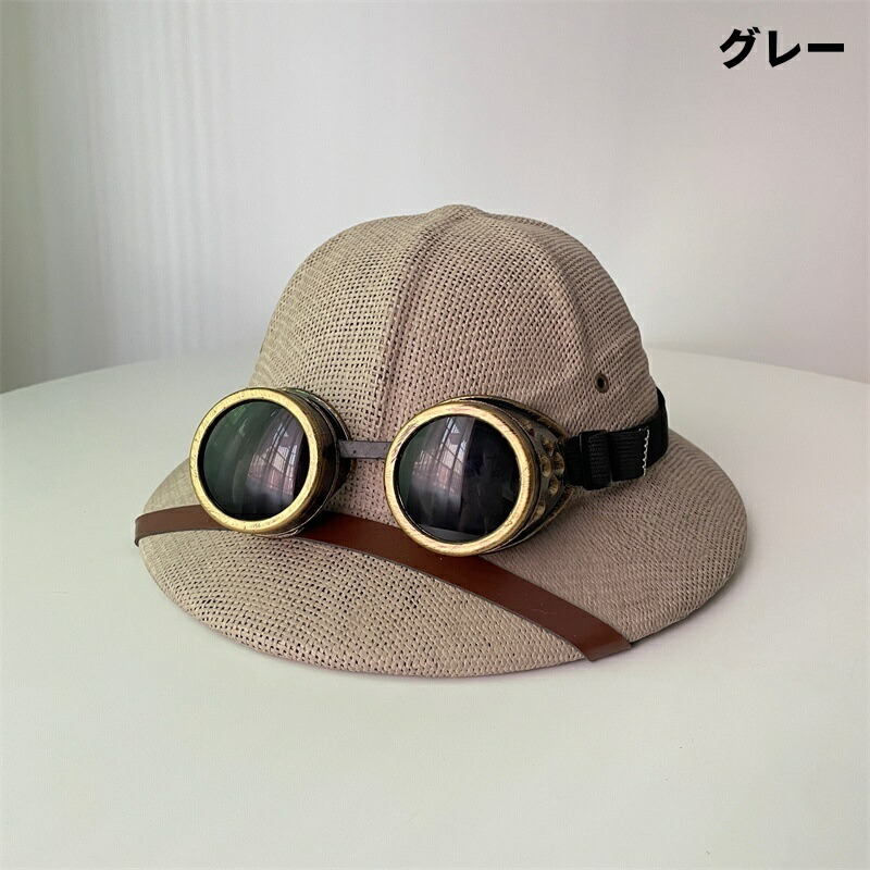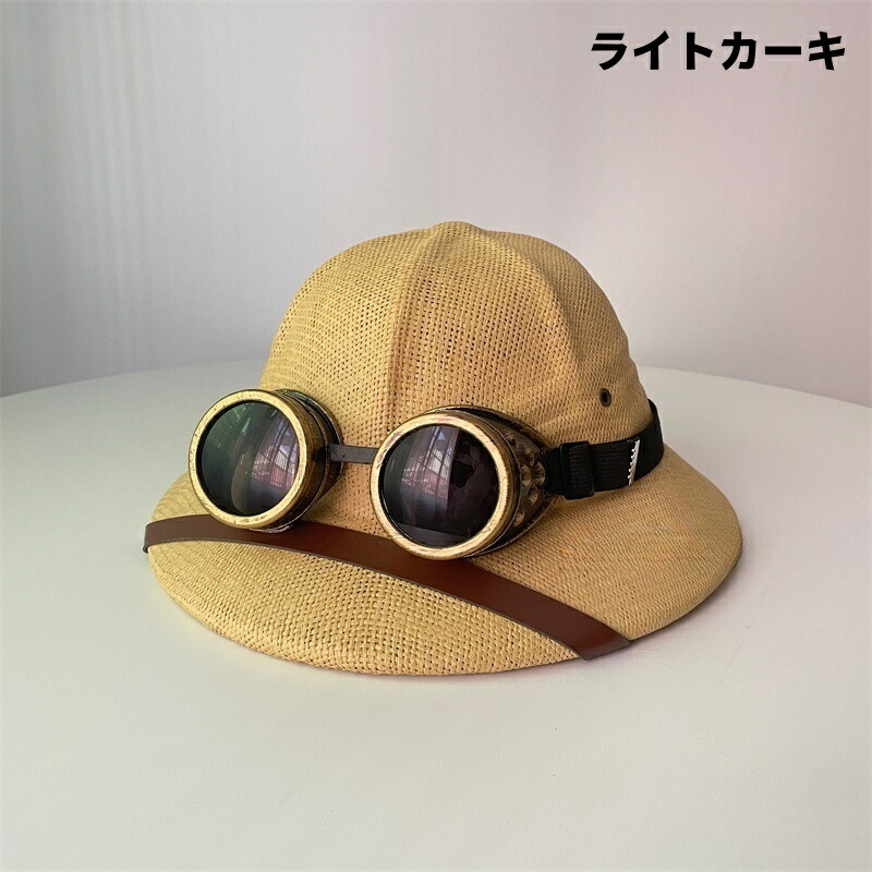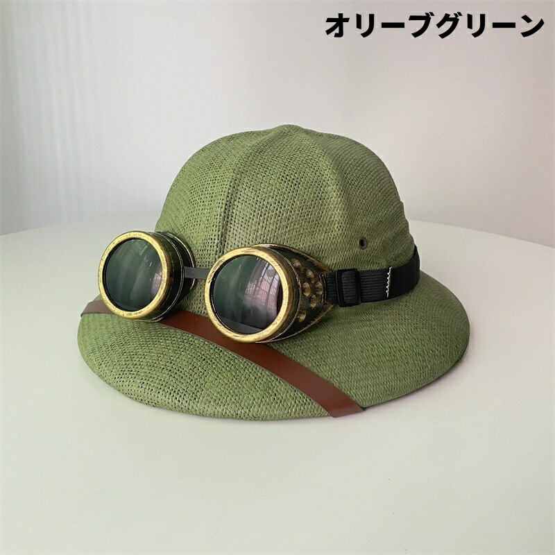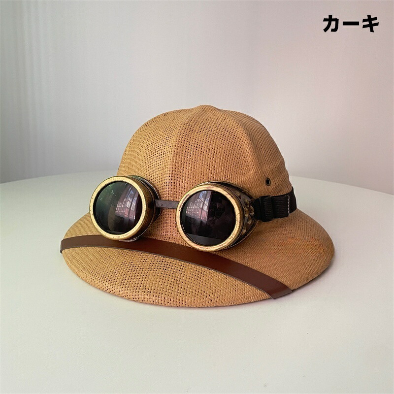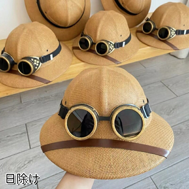 ゴーグル付きボウラー帽子 探険家帽子 日除け 麦わら帽子 ボウラー帽子 探険家 ファッション 女性 男性 夏 レディース 大きいサイズ 子供 メンズ