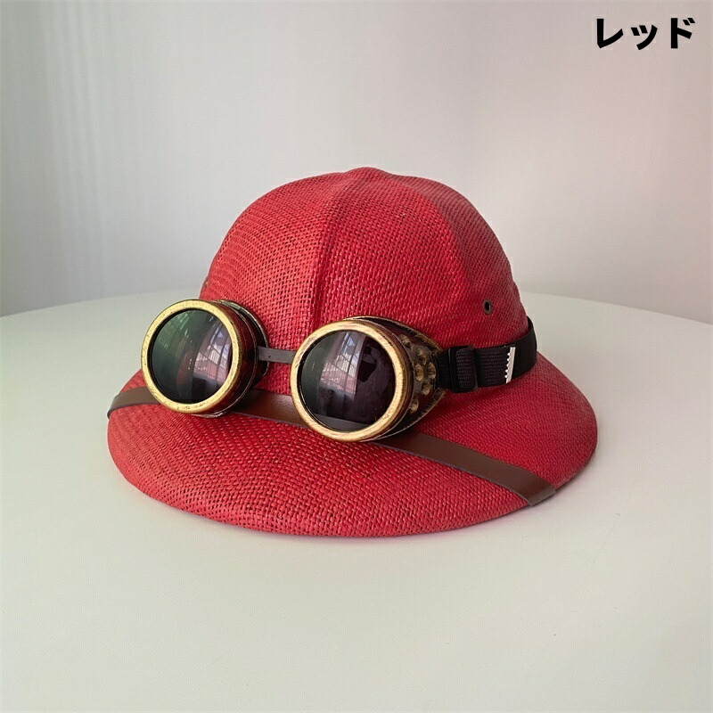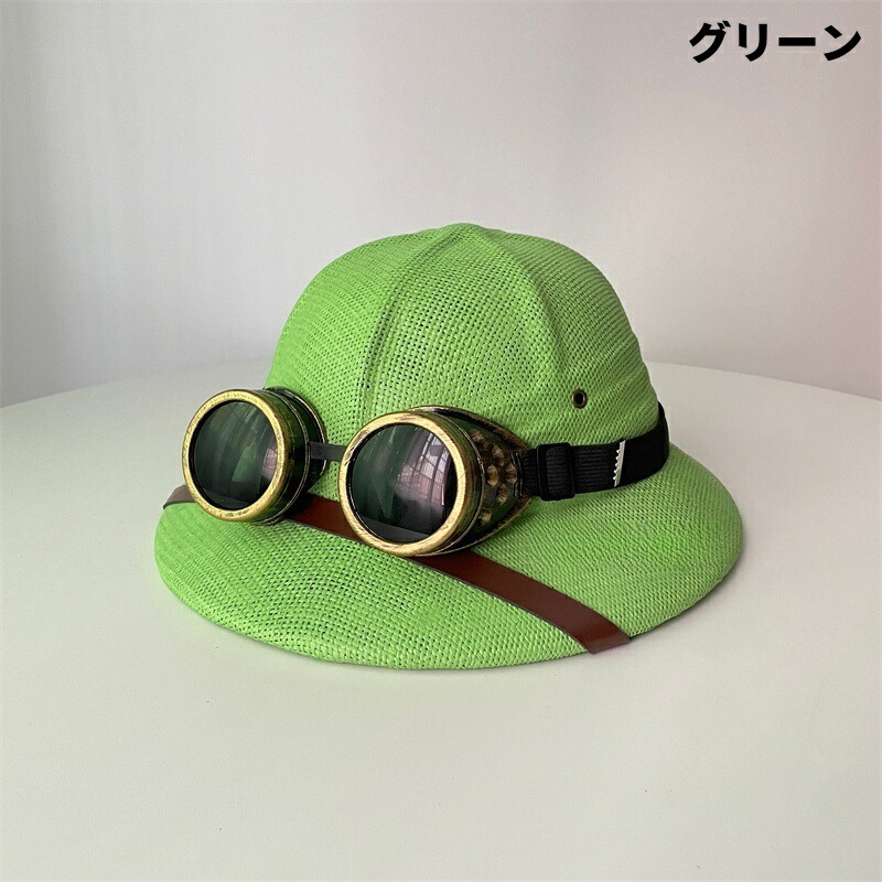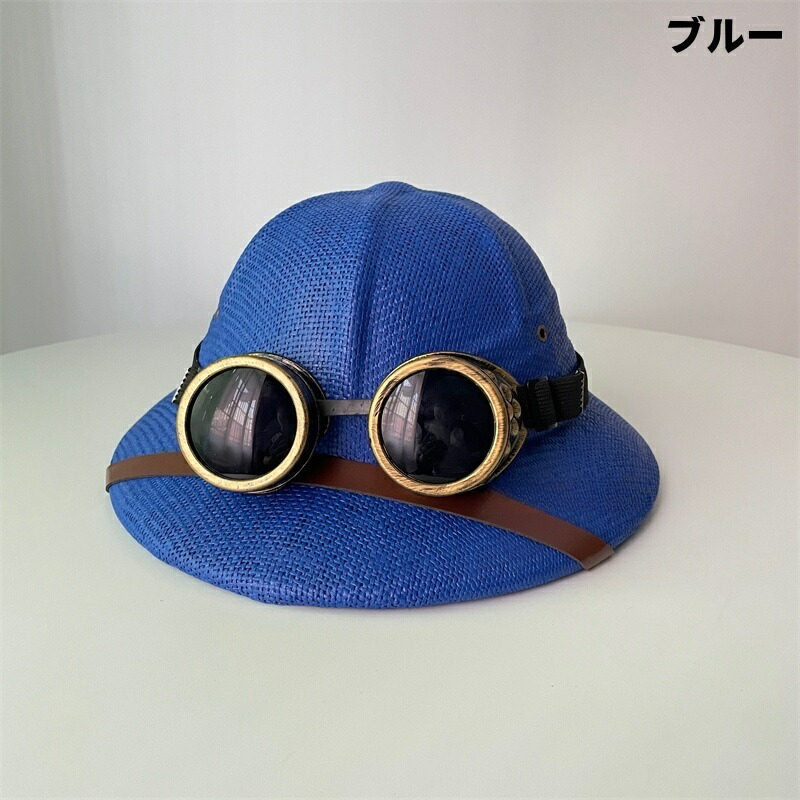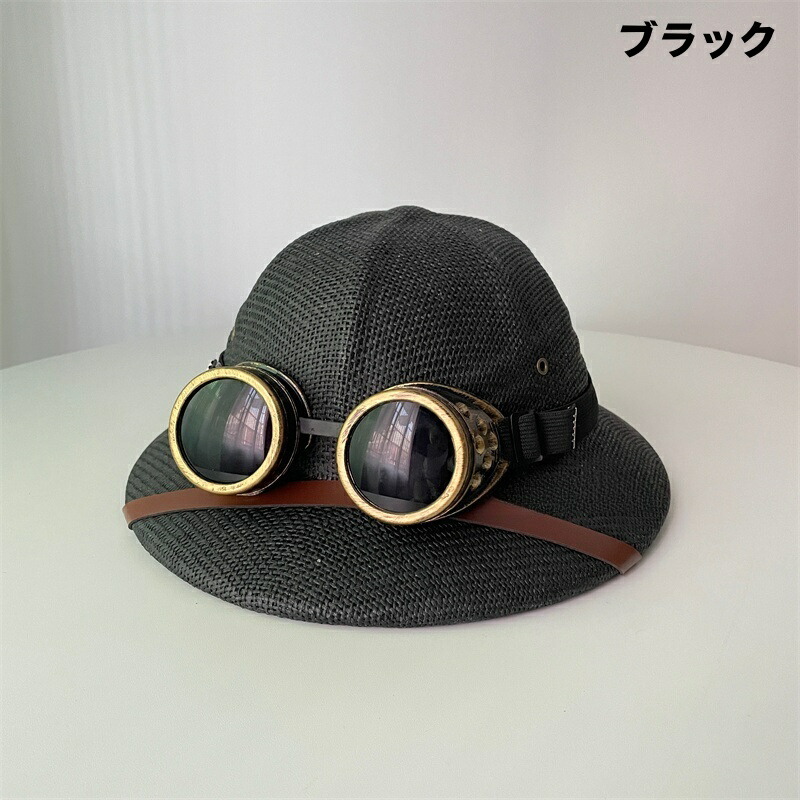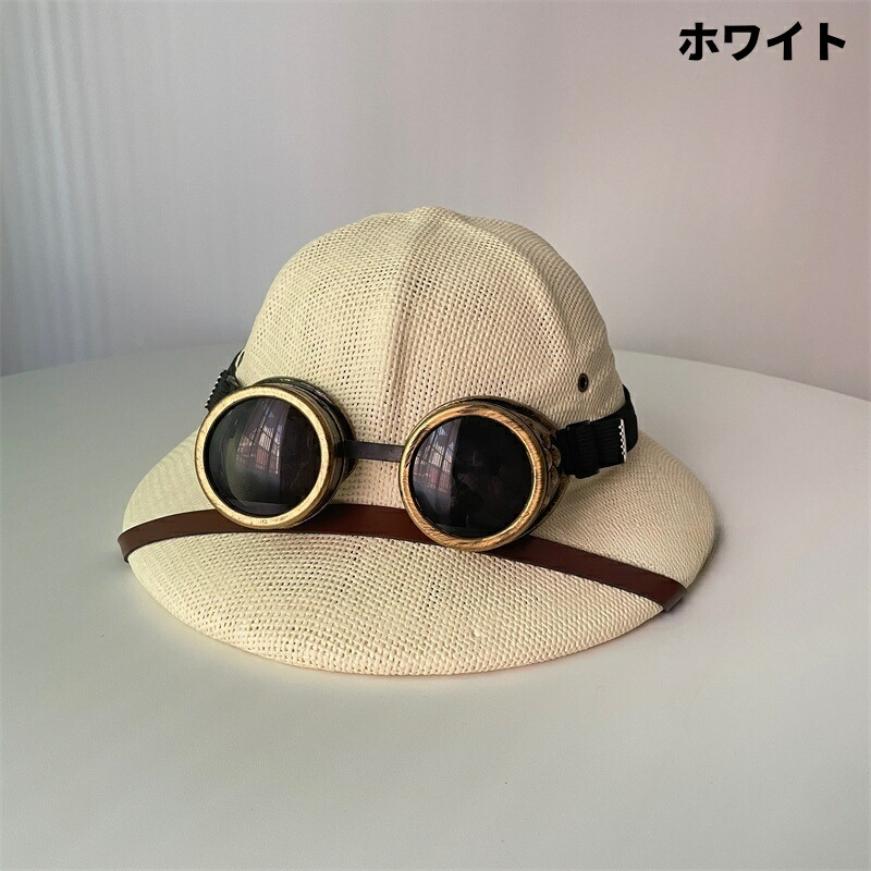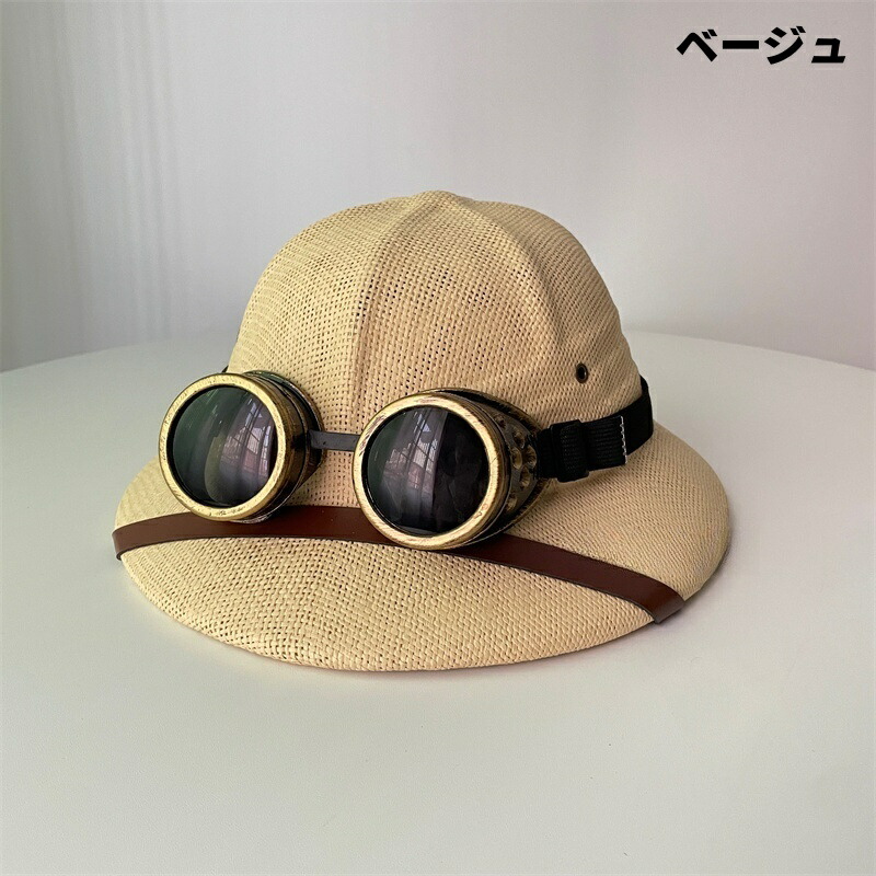 ゴーグル付きボウラー帽子 探険家帽子 日除け 麦わら帽子 ボウラー帽子 探険家 ファッション 女性 男性 夏 レディース 大きいサイズ 子供 メンズ