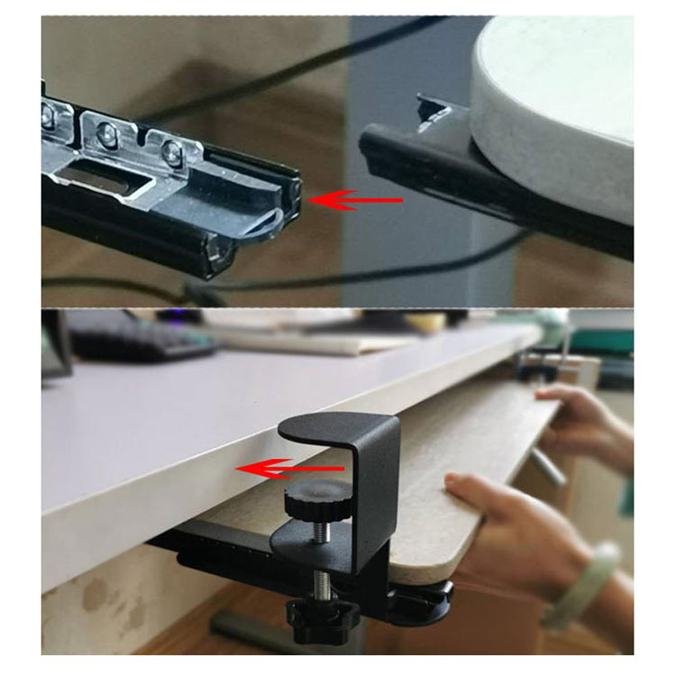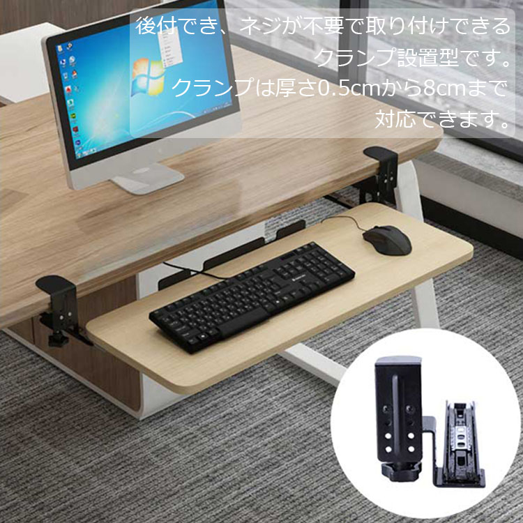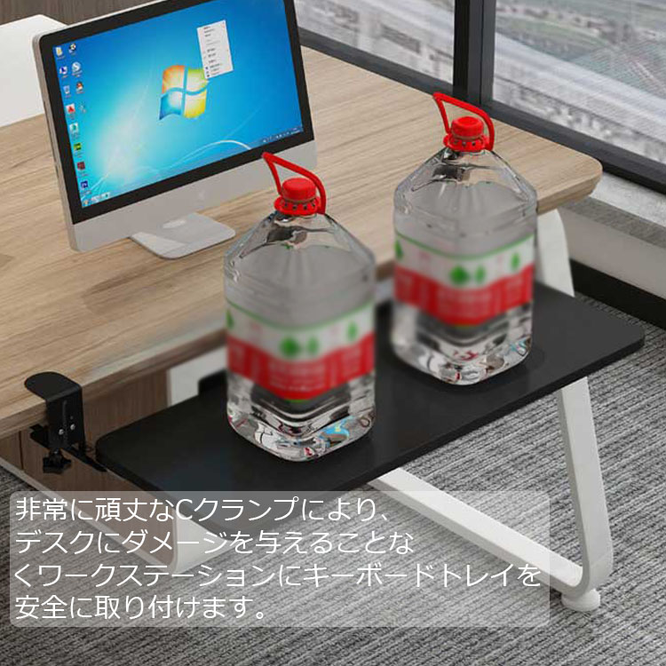 非常に頑丈なCクランプにより、デスクにダメージを与えることなくワークステーションにキーボードトレイを安全に取り付けます。