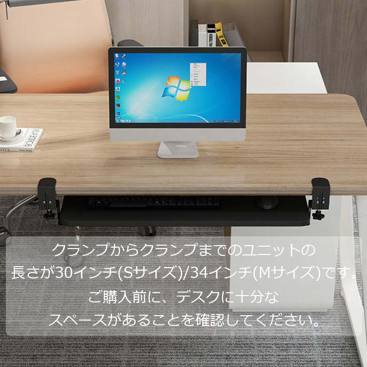 クランプからクランプまでのユニットの長さが30インチ(Sサイズ)/34インチ(Mサイズ)です。ご購入前に、デスクに十分なスペースがあることを確認してください。