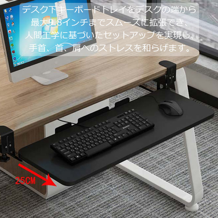 キーボードスライダー 高さ調整可能 後付け キーボード ラック スチールラック 高さ フルキーボード ラックス pcデスク キーボードトレイ キーボード台 マウス テレワーク 在宅ワーク デスク延長板