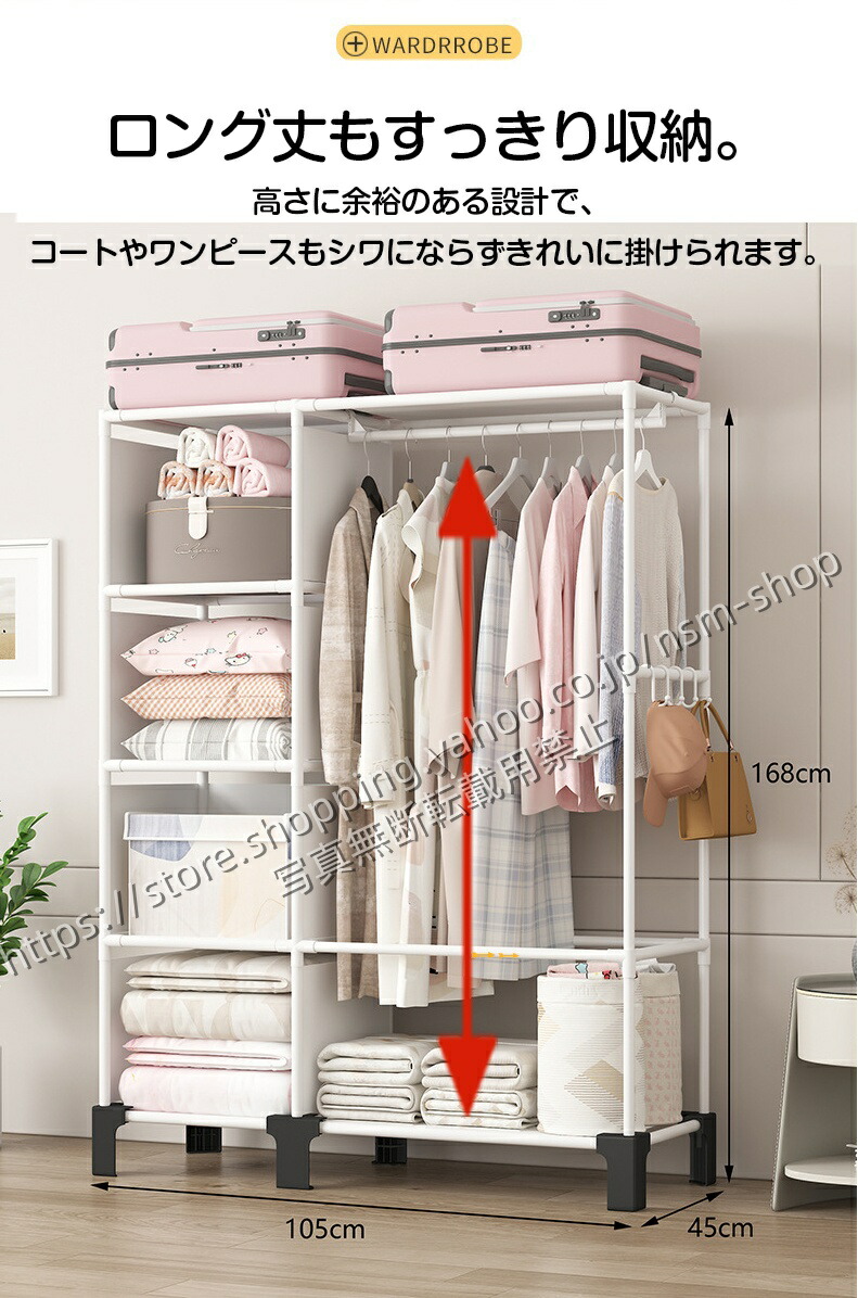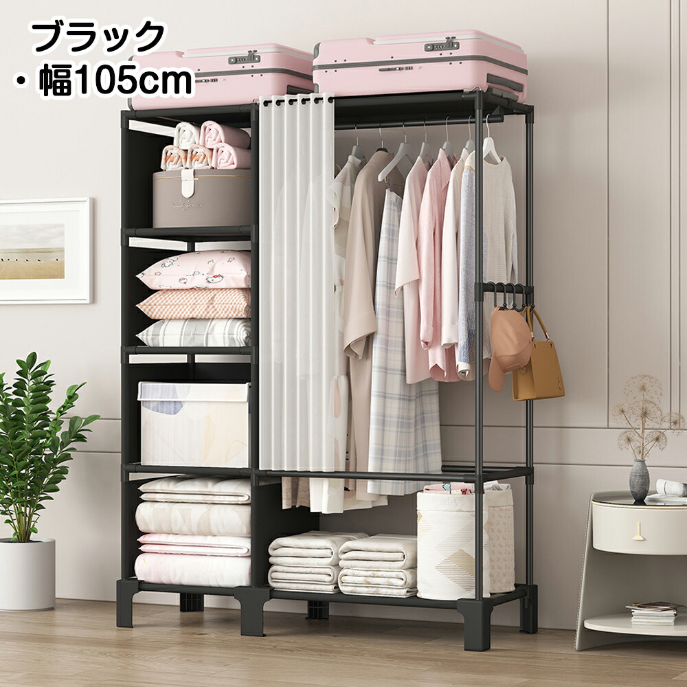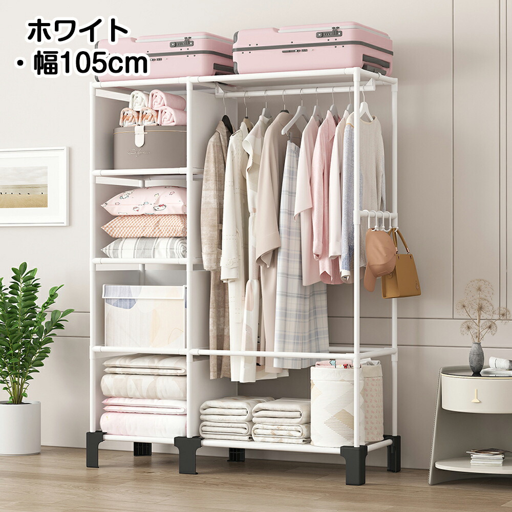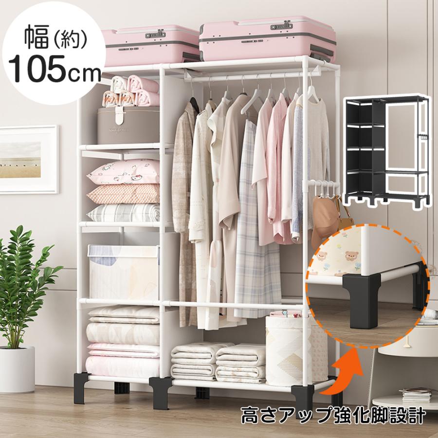 新登場 安定感のある高脚設計 大容量 幅105cm 衣類ラック クローゼット ハンガーラック 組立式 防塵 洋服掛け 布団収納 棚付き シンプル 衣類収納棚