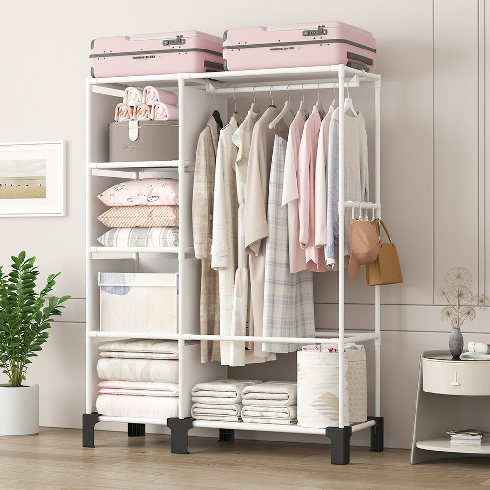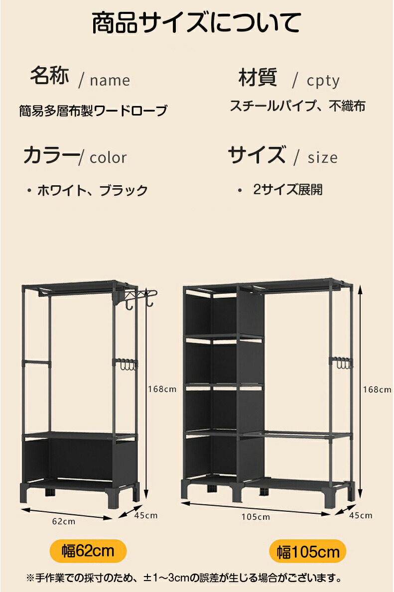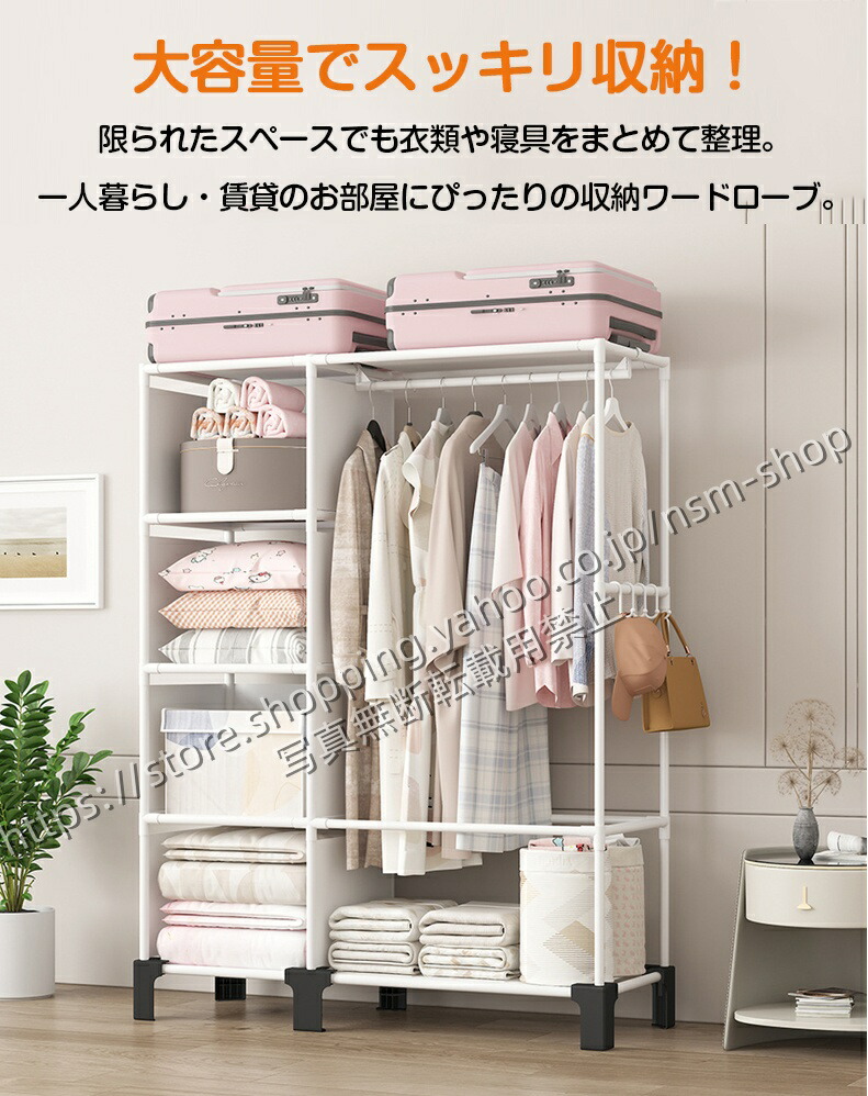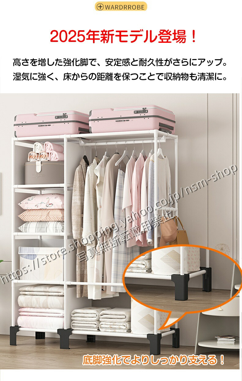 新登場 安定感のある高脚設計 大容量 幅105cm 衣類ラック クローゼット ハンガーラック 組立式 防塵 洋服掛け 布団収納 棚付き シンプル 衣類収納棚