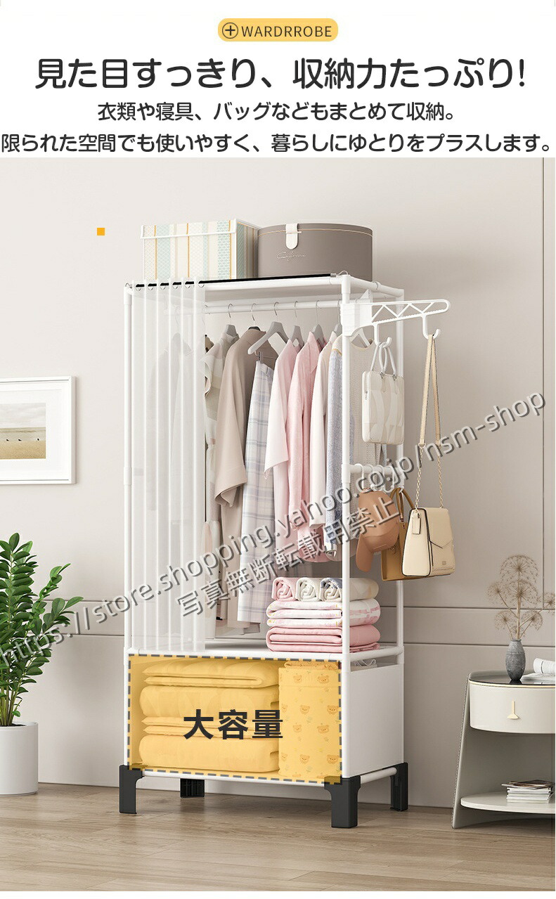 収納ラック/ワードローブ/ハンガーラック/衣類収納棚/クローゼット収納/防塵カバー付き/組立式衣装棚/賃貸収納/おしゃれ収納/北欧風/シンプル家具/ランドリー収納/スチールラック/多機能ハンガー/ロングコート対応/大容量収納/衣替え便利/家庭用クローゼット/省スペース収納/引越し便利グッズ/整理整頓/収納家具/一人暮らしおすすめ