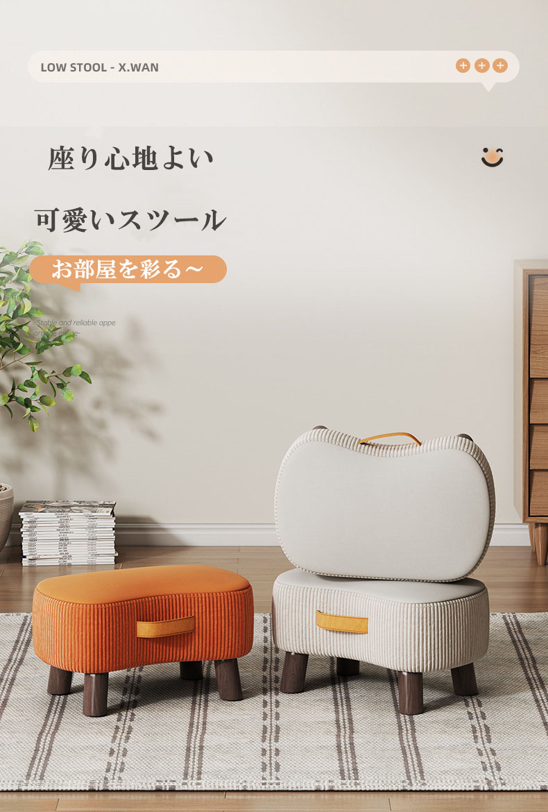 スツール おしゃれ 軽量スツール ロースツール 玄関 オットマン かわいい ロータイプ 子供用 キッズ 新登場 無垢 布製 北欧 ナチュラル インテリア シンプル 低い コンパクト 一人暮らし 完成品