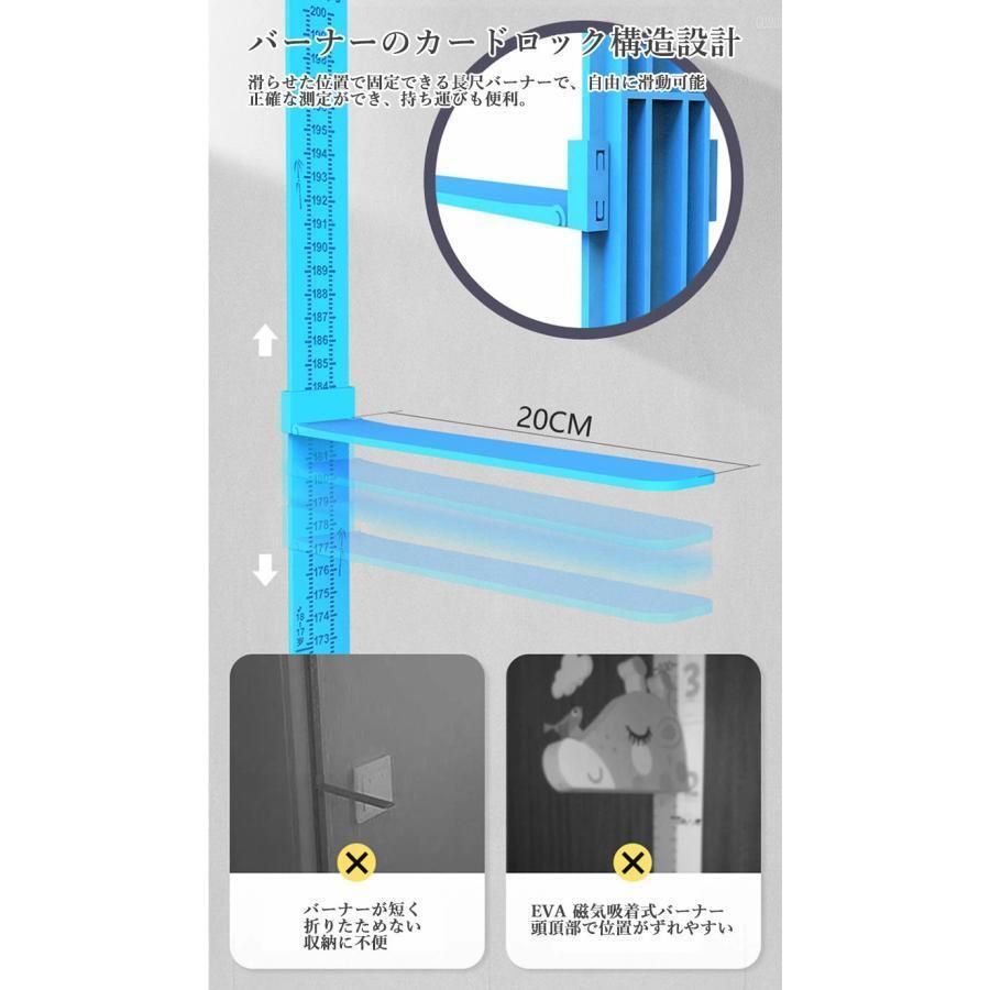 壁掛け式身長計 身長計 0~200cm測定範囲 ミリ単位の目盛り ペン記入可能 壁掛け 子供 身長測定 子供部屋 らくらく収納 身長測るやつ