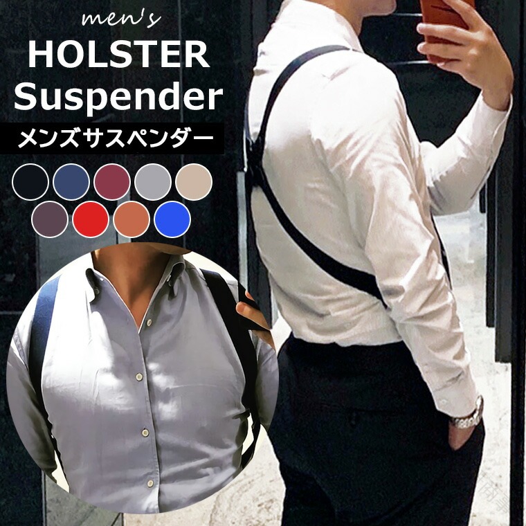 サスペンダー メンズ ホルスター 2.5cm 幅 クリップ 式 X 型 体 の サイド で 止める ビジネス スーツ おしゃれ 全9色 ショルダー