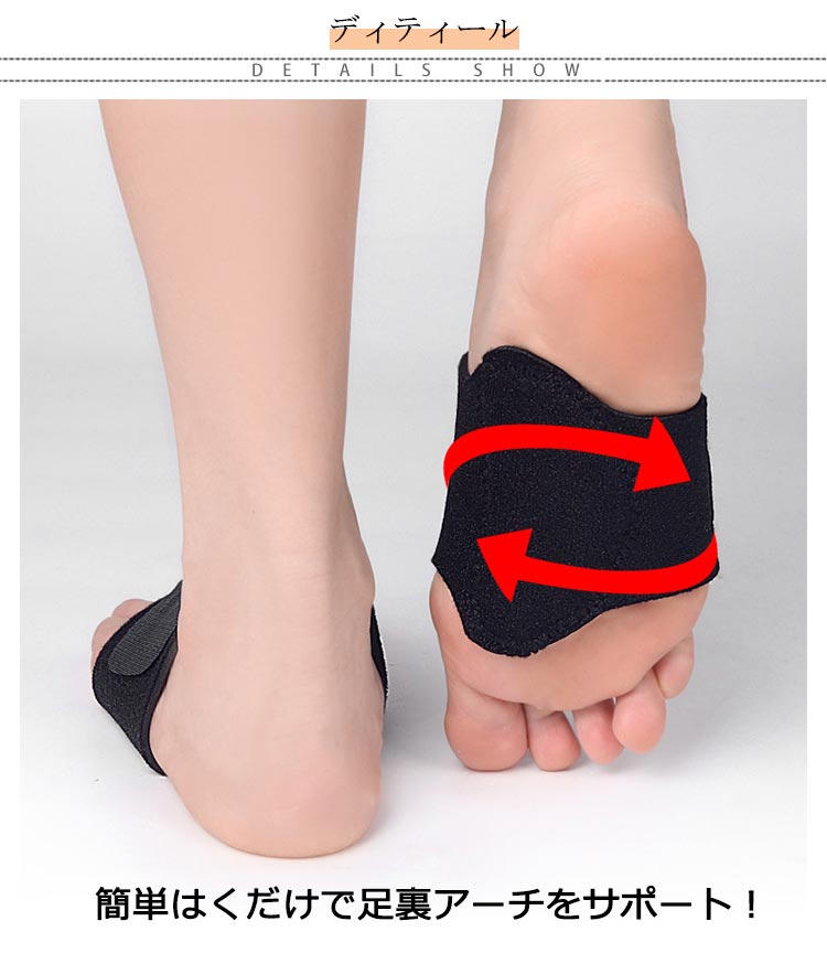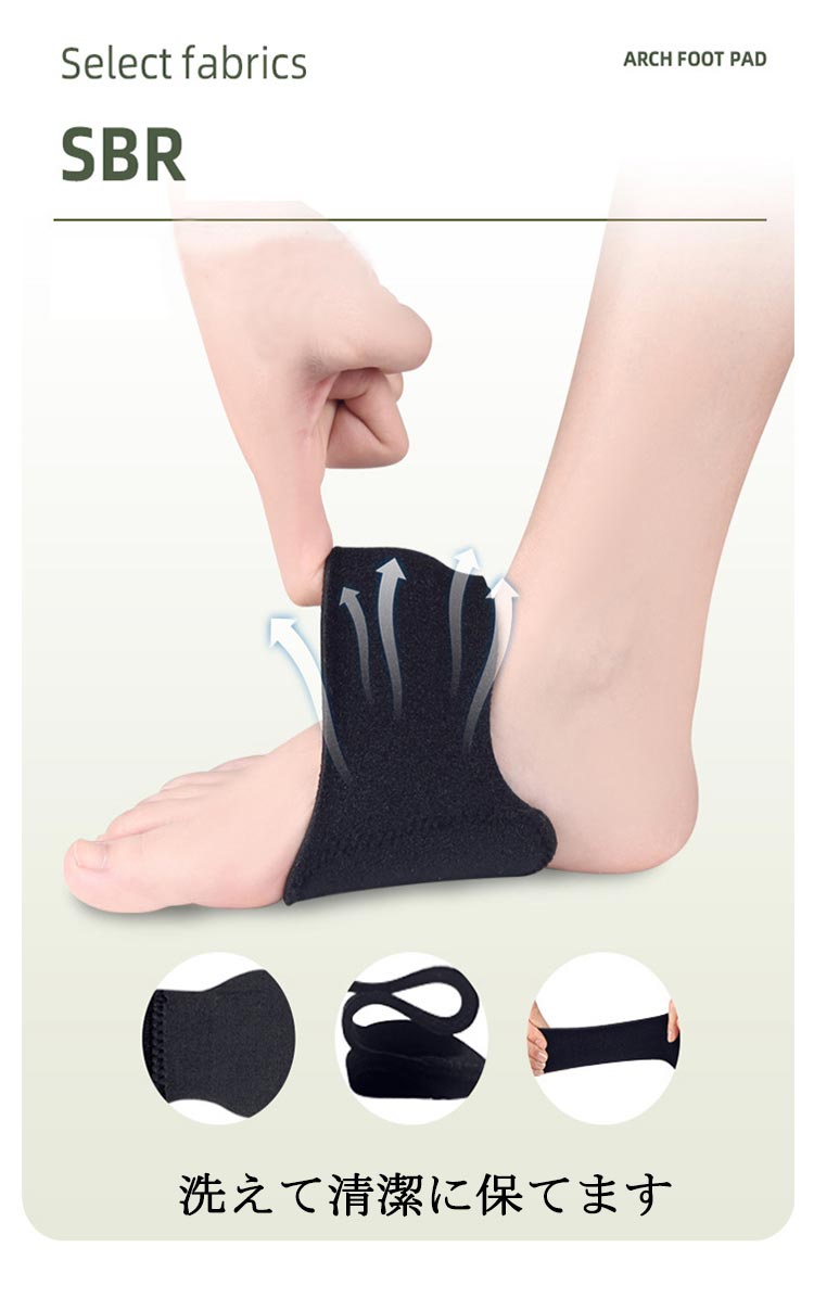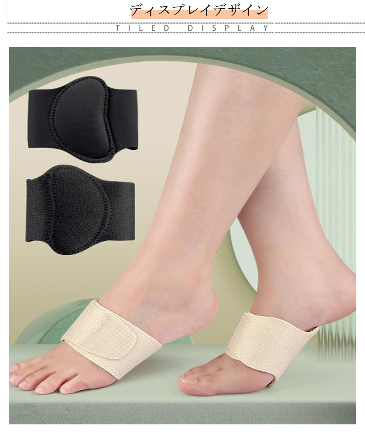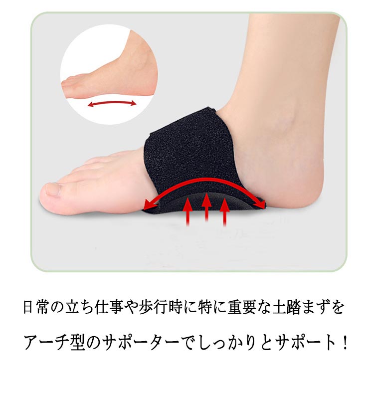 ・日常の立ち仕事や歩行時に特に重要な土踏まずを、アーチ型のサポーターでしっかりとサポート!