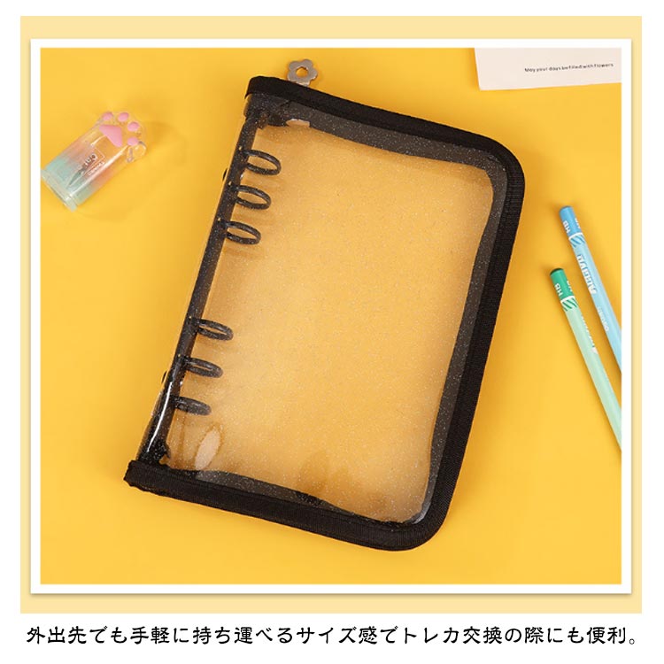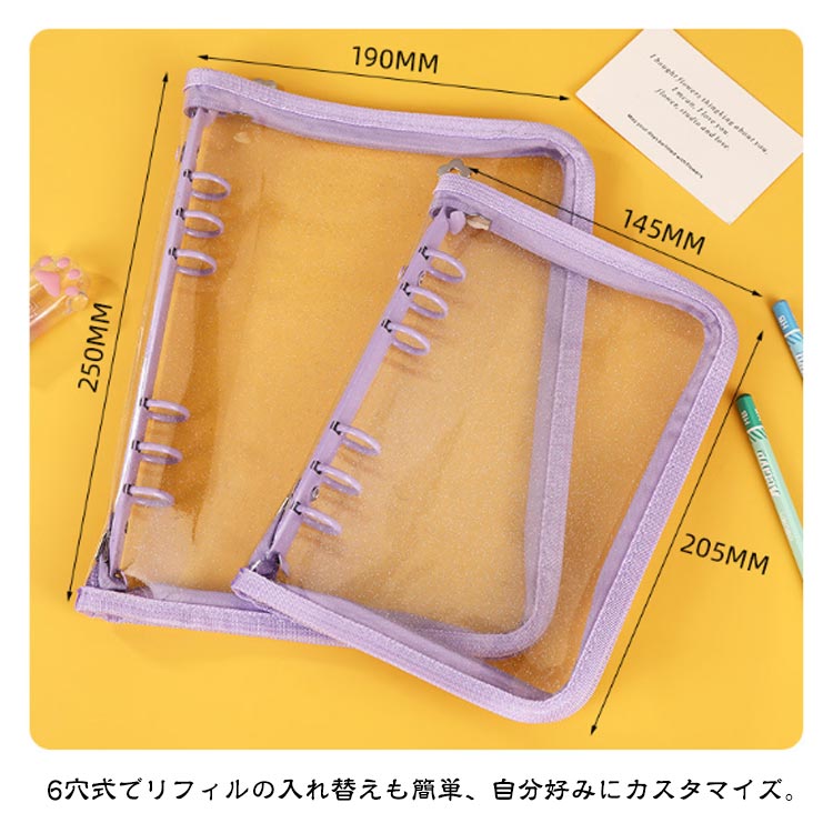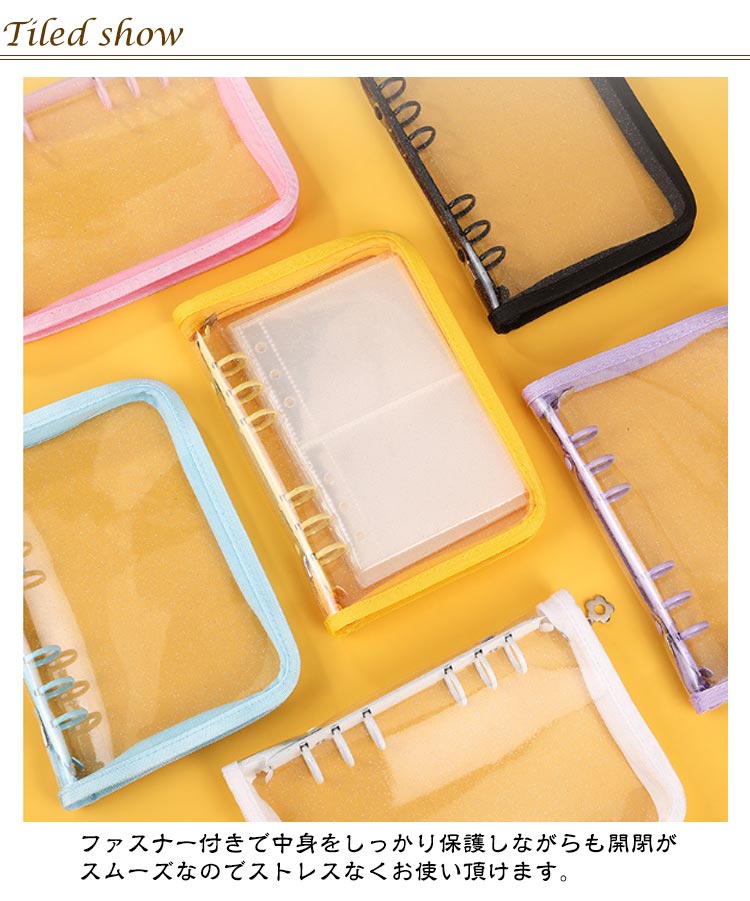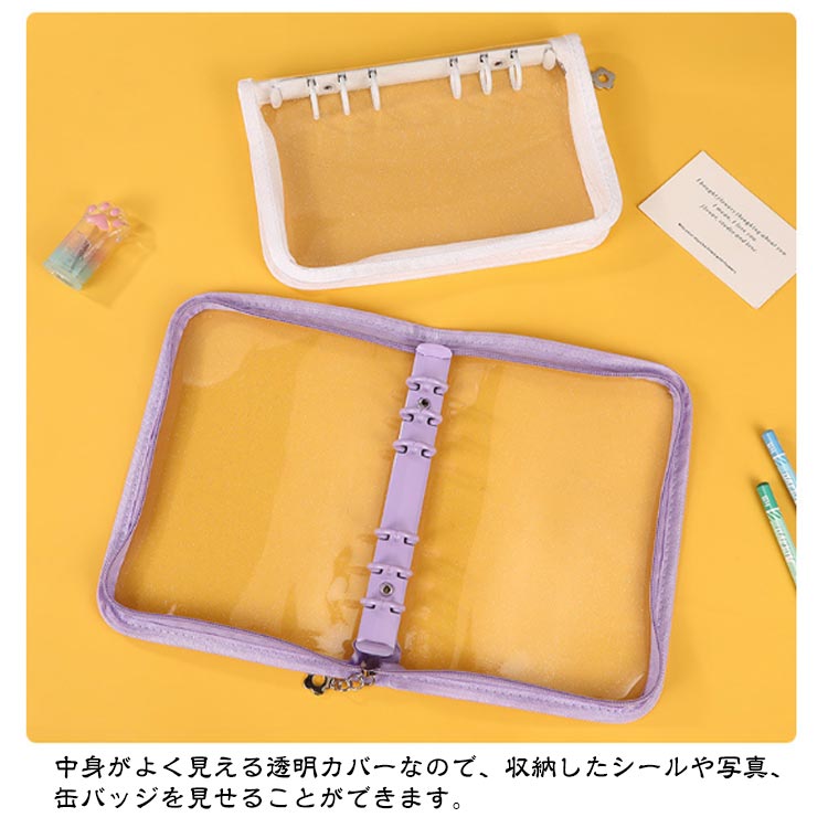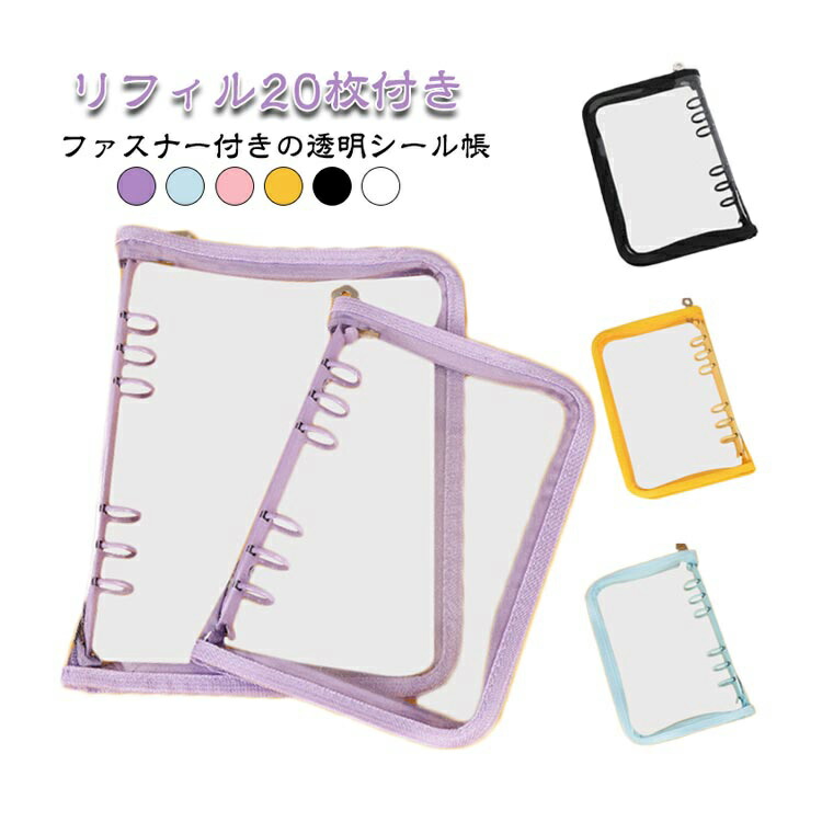 A6 ケース シール手帳 A5 6穴 バインダー ファスナー付 シールバインダー シール帳 トレカ カード ファイル 収納 クリアバインダー 女の子 透明シール 台紙 リフィル付き はがせる