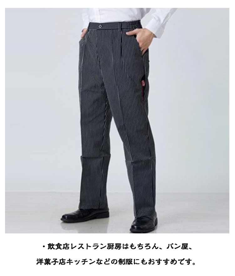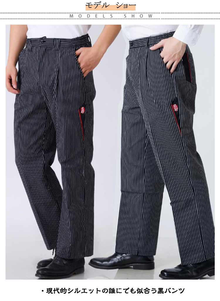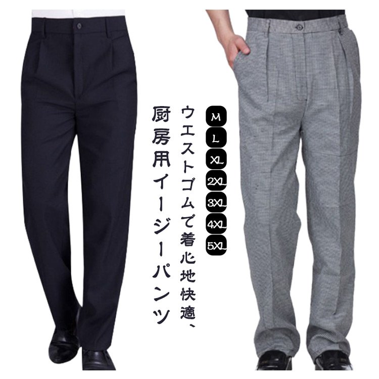 厨房用 スラックス ズボン 黒ズボン ウェストゴム メンズ コックパンツ ユニフォーム ロングパンツ 接客 厨房服 飲食業 レストラン 居酒屋 制服 仕事用 キッチン