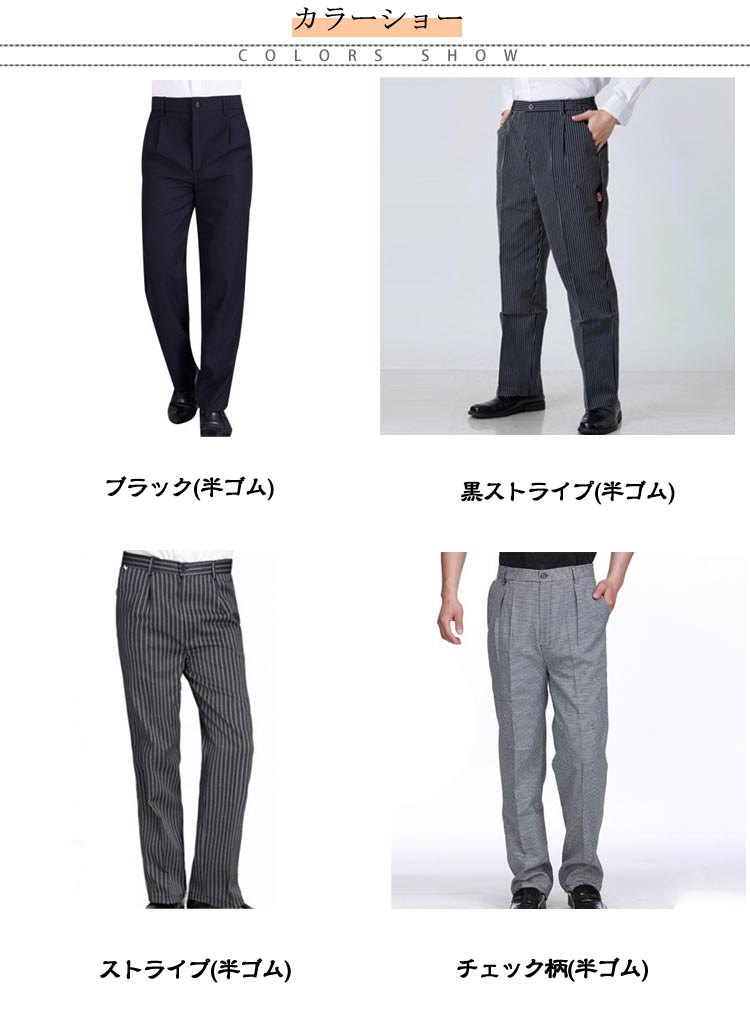 厨房用 スラックス ズボン 黒ズボン メンズファッション 新登場! ブラック(半ゴム) 黒ストライプ(半ゴム) ストライプ(半ゴム) チェック柄(半ゴム) M L XL 2XL 3XL 4XL 5XL