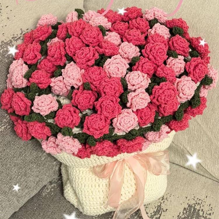 花束ブランケット バラの花束のブランケット かぎ針編みキット 花束ブランケット毛糸 未完成品 DIY 手作り ブーケ ブランケット キット 初心者向け バラ 柔らかい フラワーかぎ針編み 花 スズラン