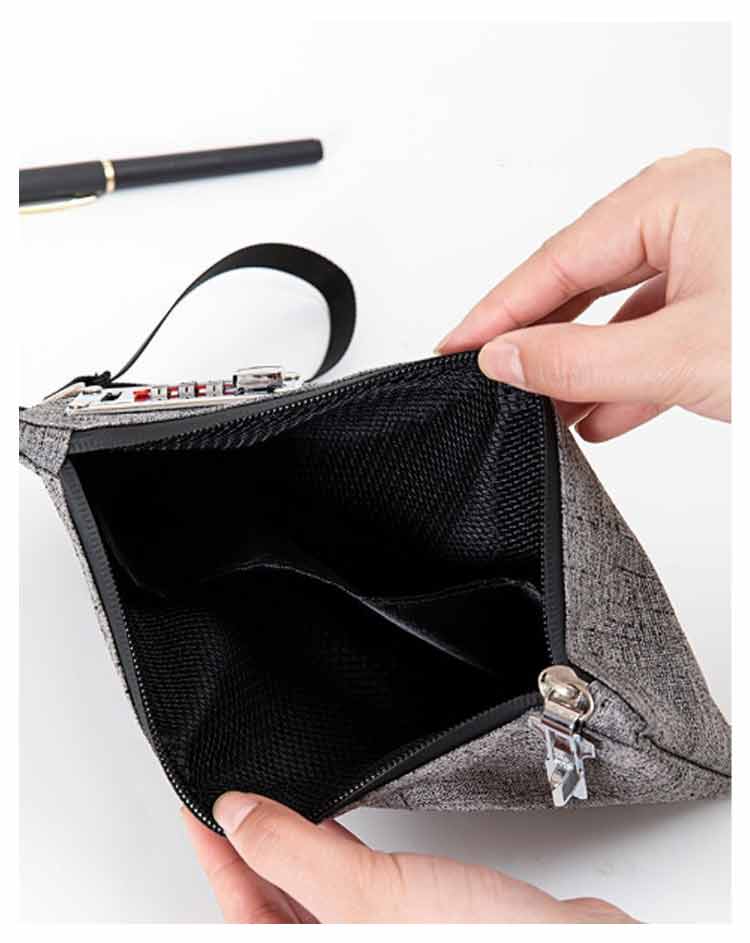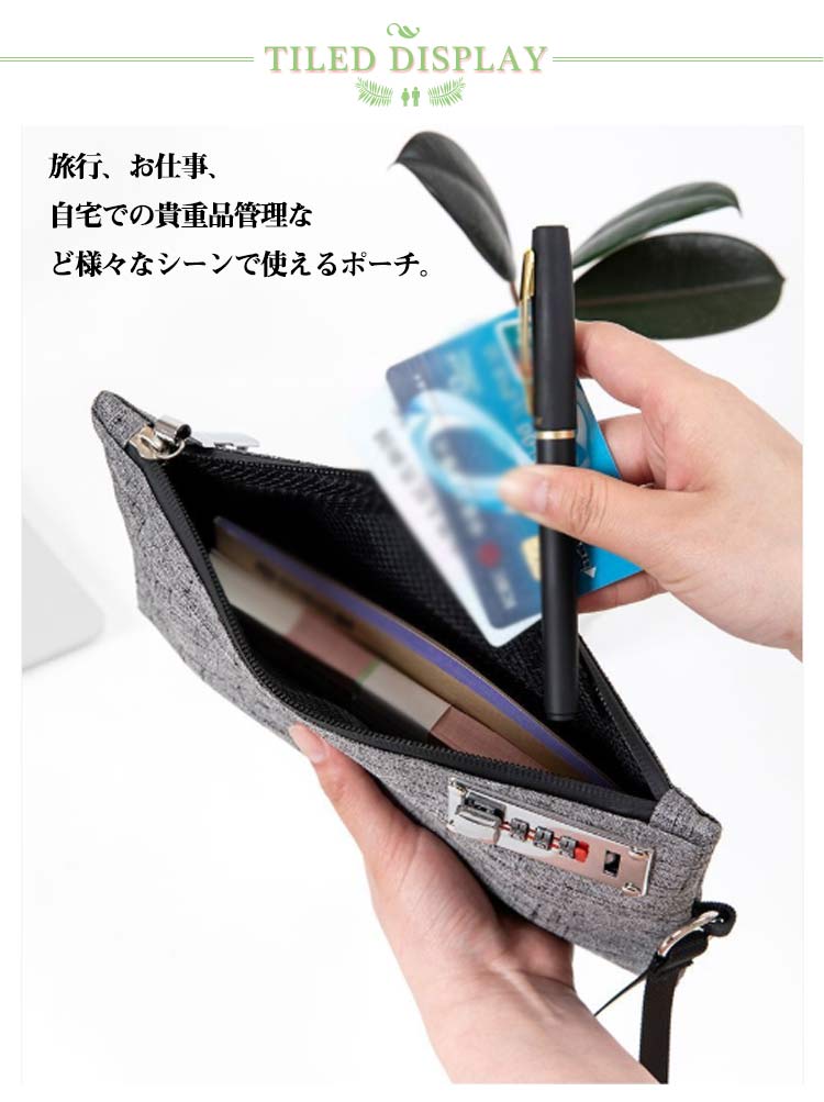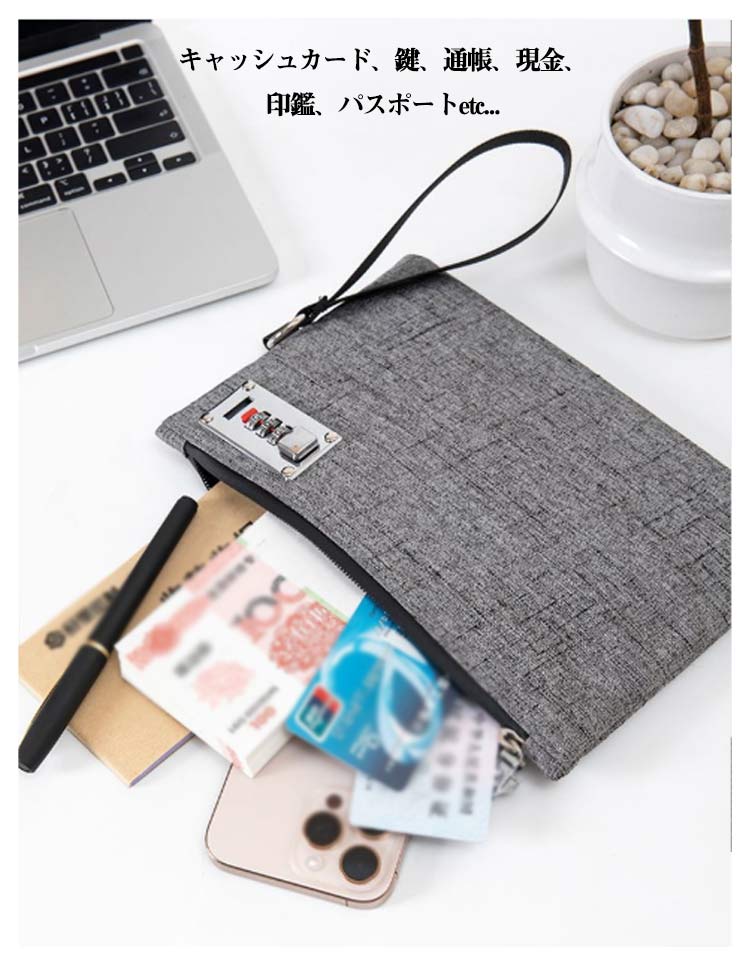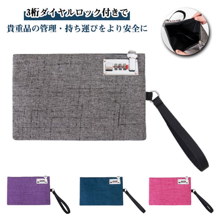 鍵付き 旅行 3桁ロック セキュリティポーチ ダイヤルロック ポーチ 持ち手付き 貴重品入れ 防犯 カードケース 通帳ケース 鍵 印鑑 集金袋 無地 防水 シンプル 薄型