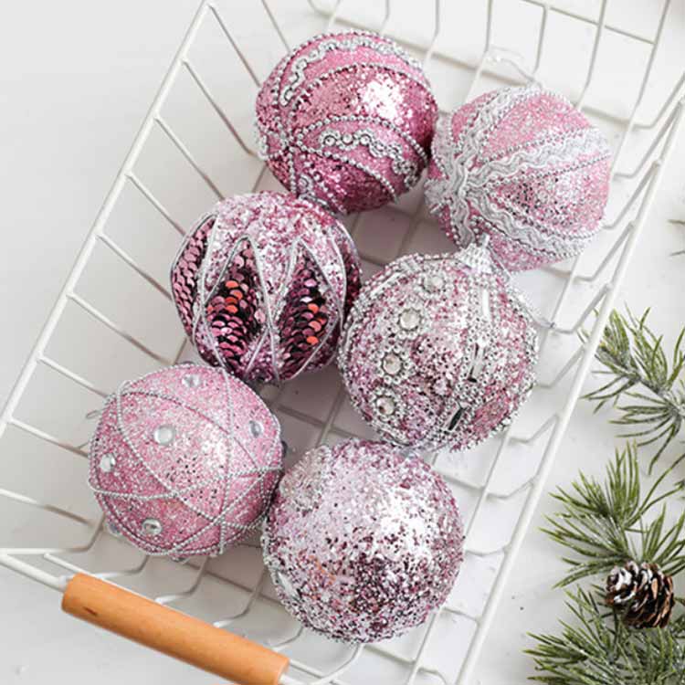 クリスマスツリー オーナメントセット 6個セット ピンク ボール 8cm 大きめ オーナメント セット 飾り付け 装飾 トップスター クリスマス ツリー 吊り下げ キラキラ 豪 飾り