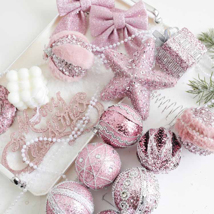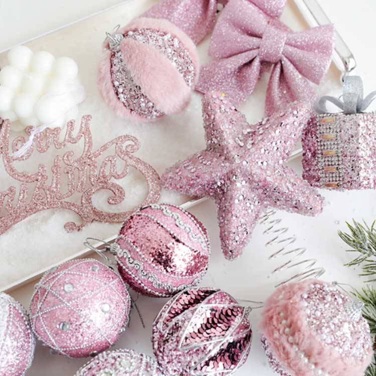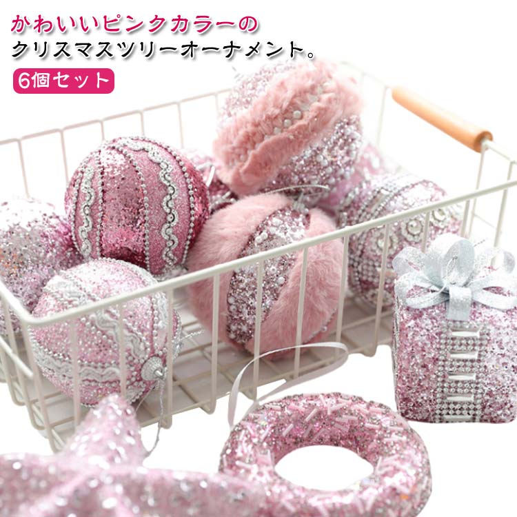 かわいいピンクカラーのクリスマスツリーオーナメント。【6個セット】